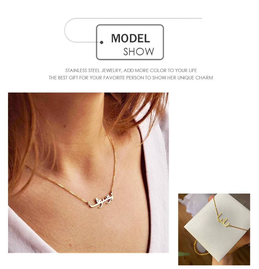 Изящное ожерелье с именем на заказ, ожерелье с подвеской в арабском стиле для женщин, этническое ювелирное изделие из нержавеющей стали, подарок кулон-табличка с именем