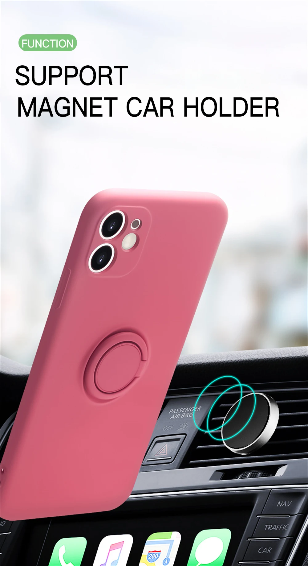 Магнитный чехол из жидкого силикона с кольцом-держателем для IPhone...