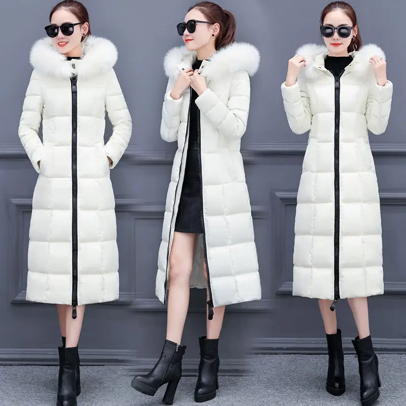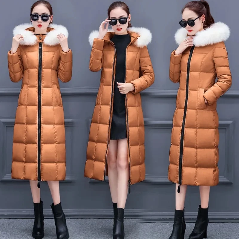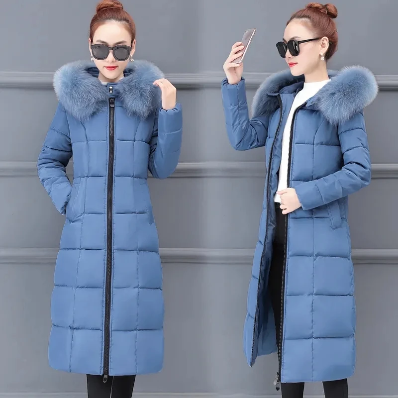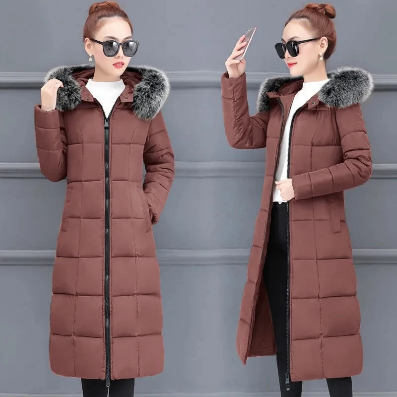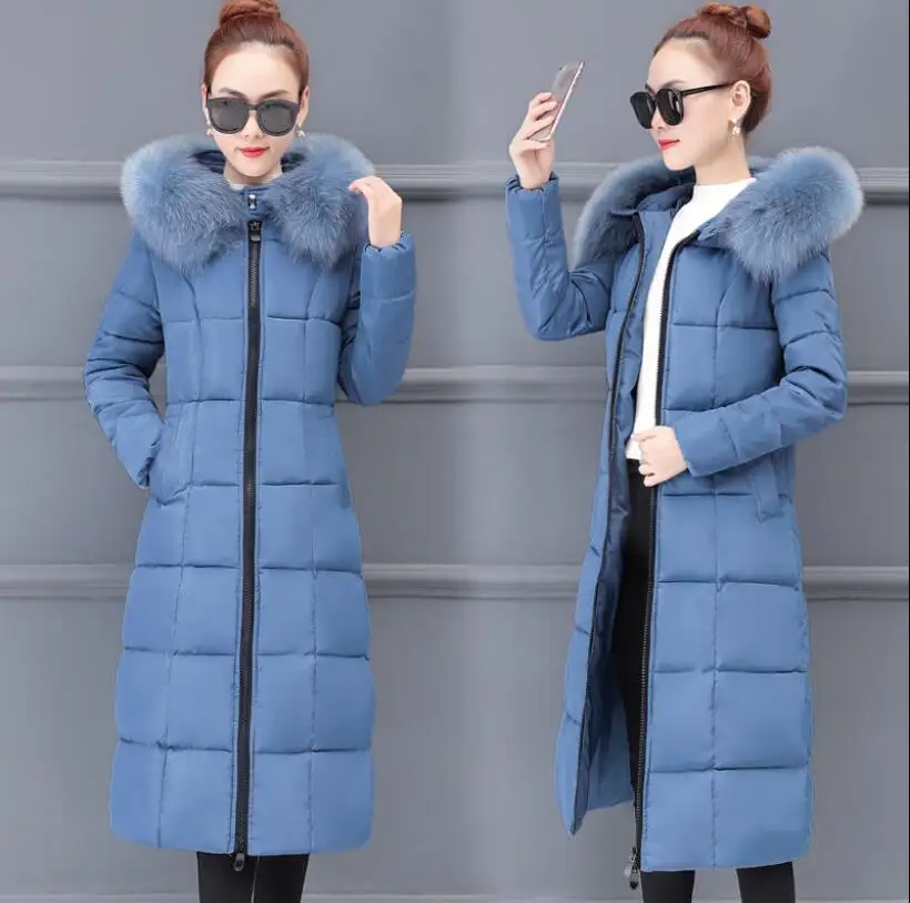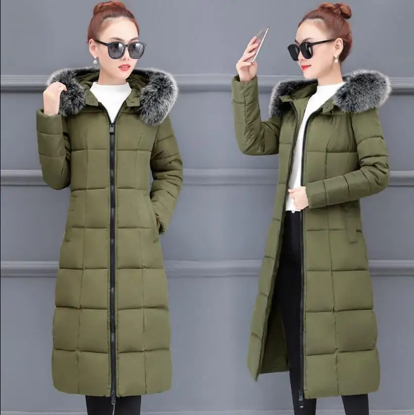 Женская зимняя куртка, новинка 2021, простая модная длинная стеганая куртка с меховым воротником в Корейском стиле, Толстая теплая хлопковая куртка, Женское пальто D2
