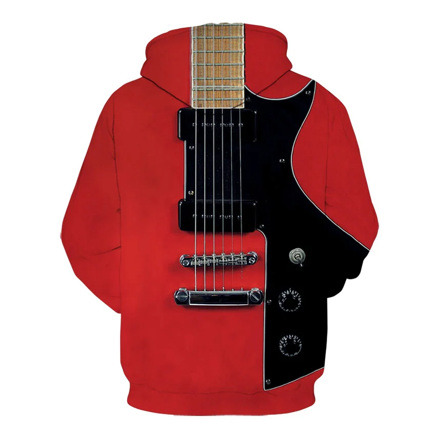 Новинка, мужские и женские толстовки с 3D принтом Красной гитары, М...