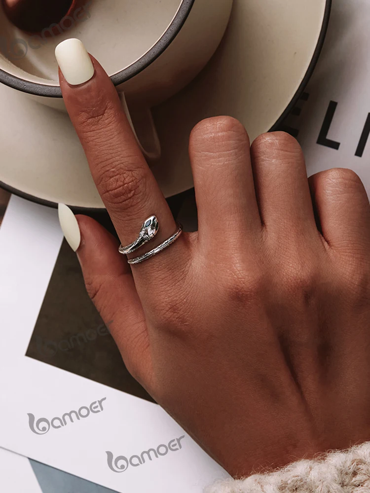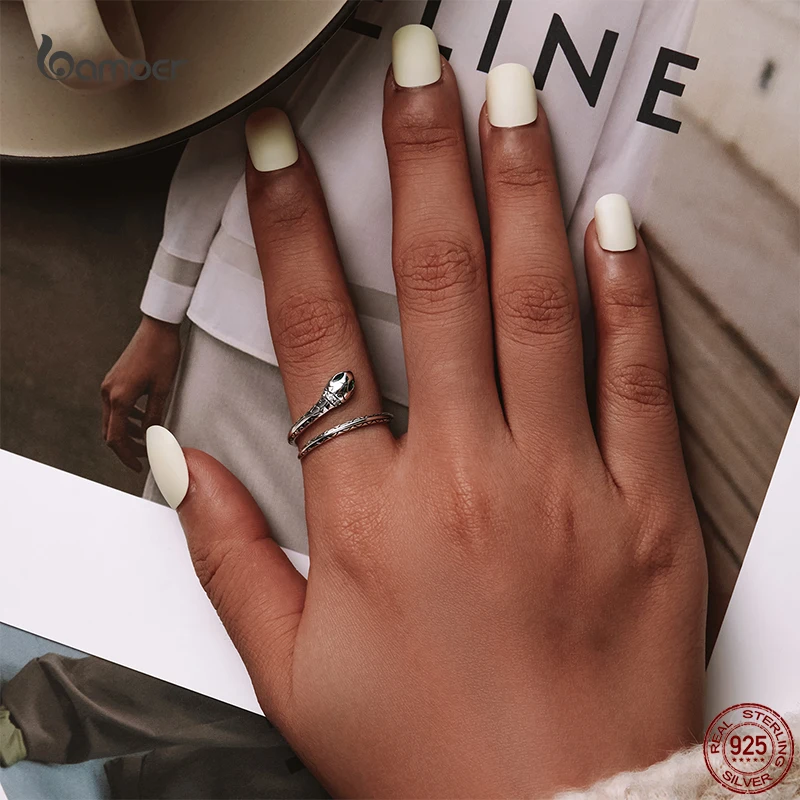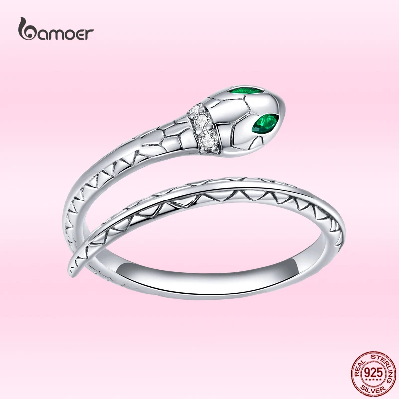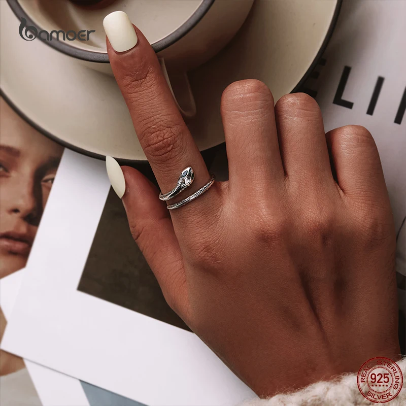 Женское кольцо Bamoer, кольцо из 100% стерлингового серебра 925 пробы с регулируемым животным кольцом, классическое винтажное ювелирное изделие