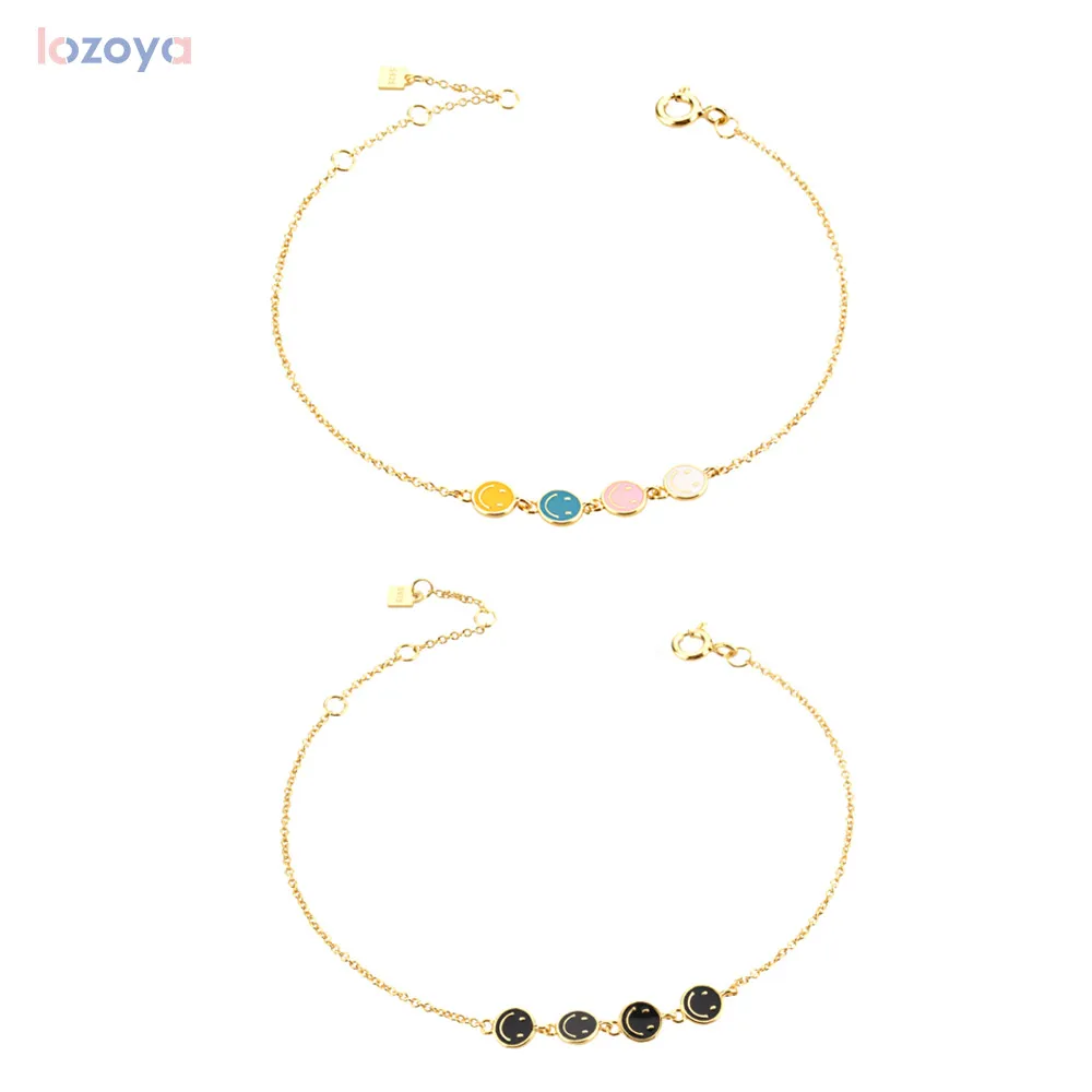 LOZOYA 2021 новые ювелирные изделия из стерлингового серебра 925 пробы серебряные золотые красочные эмалевые смайлики счастливое лицо браслет цепочка женские роскошные драгоценности
