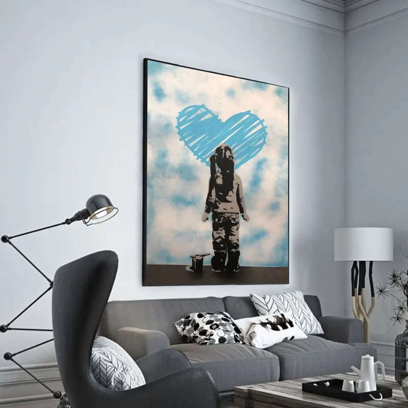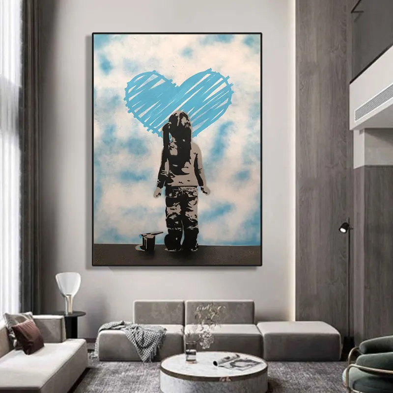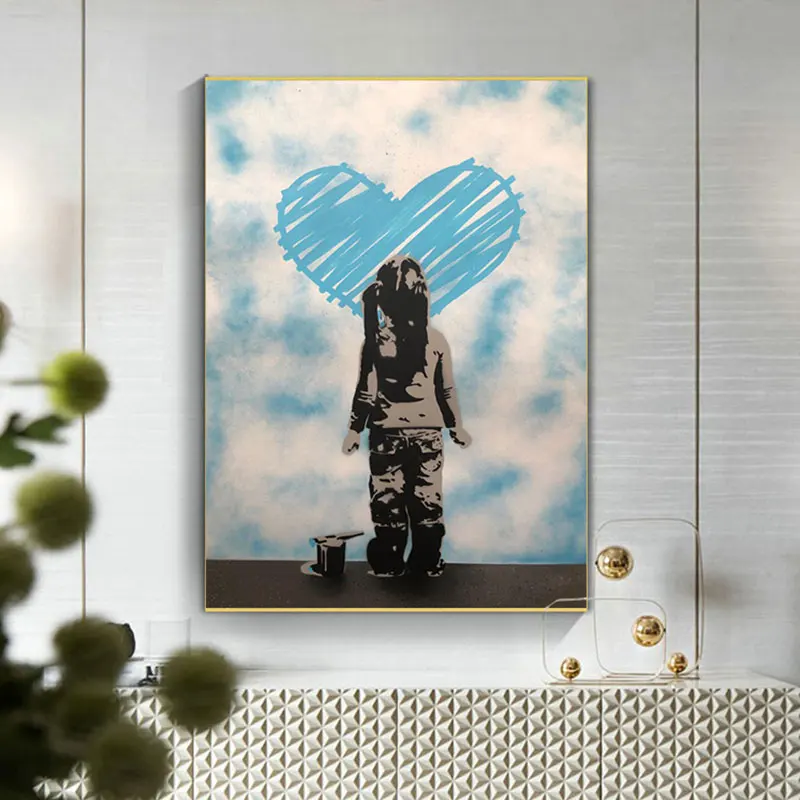 Бэнкси Искусство граффити Любовь Сердце жест Холст Картина улица ст...