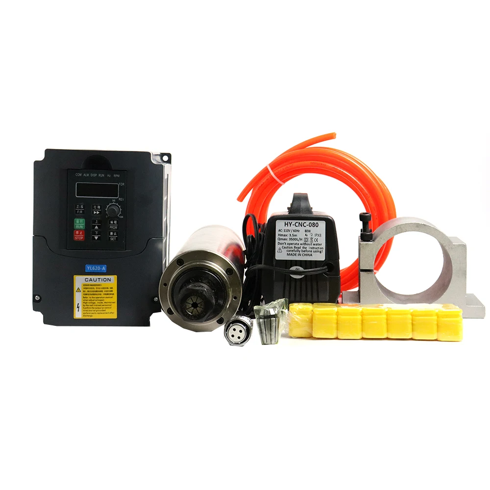 Комплект шпинделя с водяным охлаждением 800 кВт Вт 4 подшипника 65 мм охлаждающий шпиндель + инвертор кВт VFD + водяной насос 80 Вт + 13 шт. ER11 + 5 м трубы