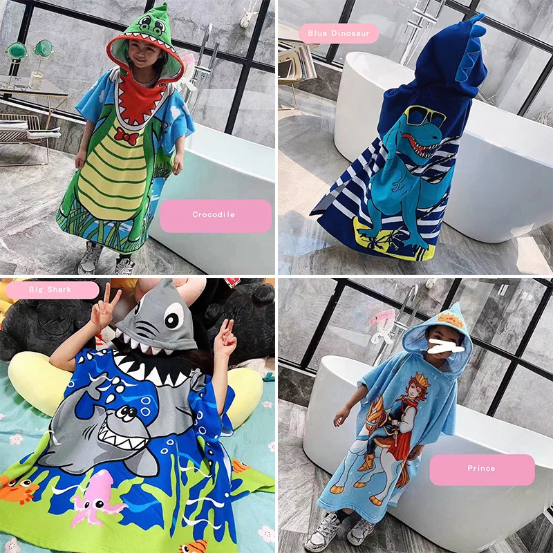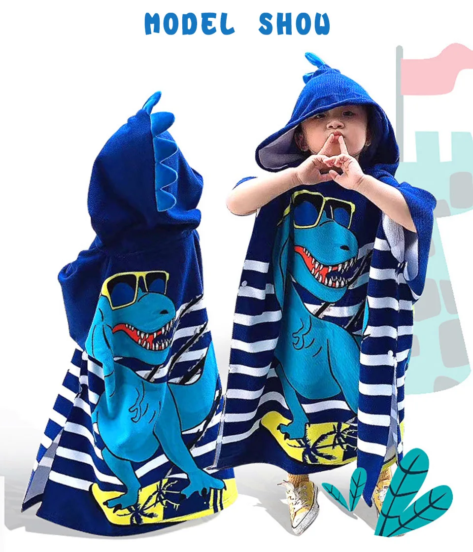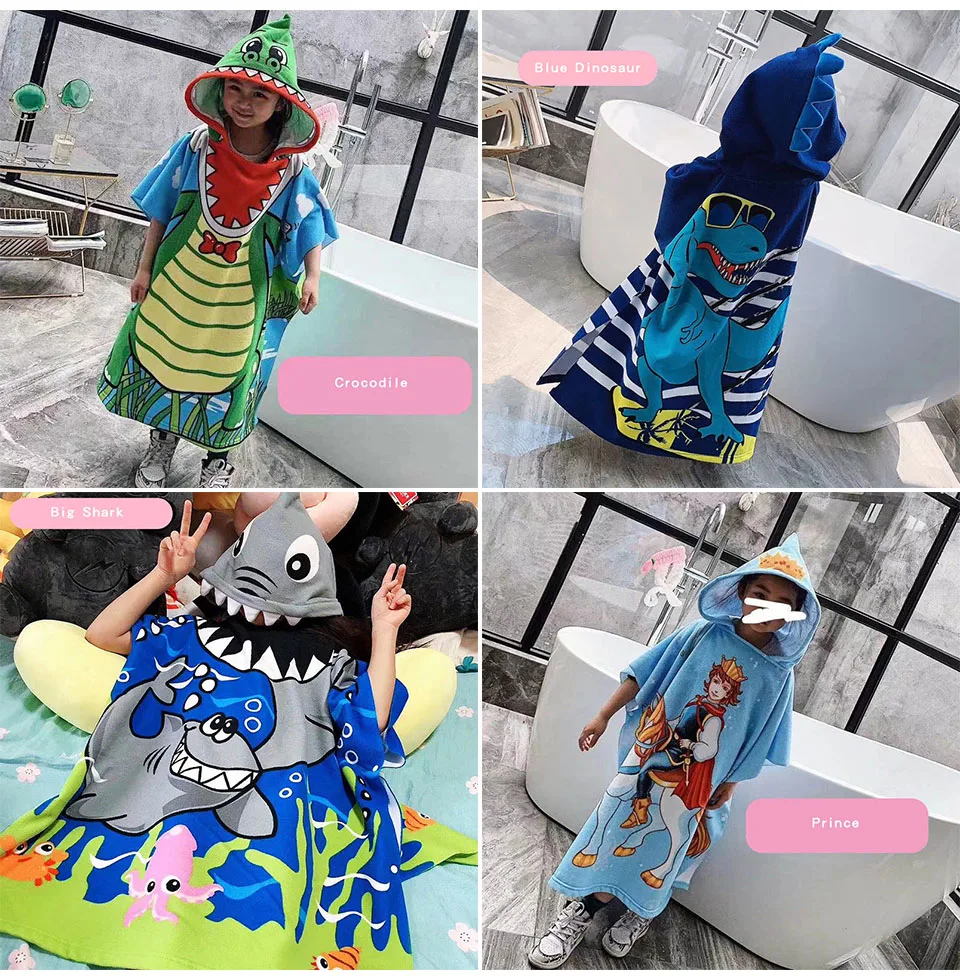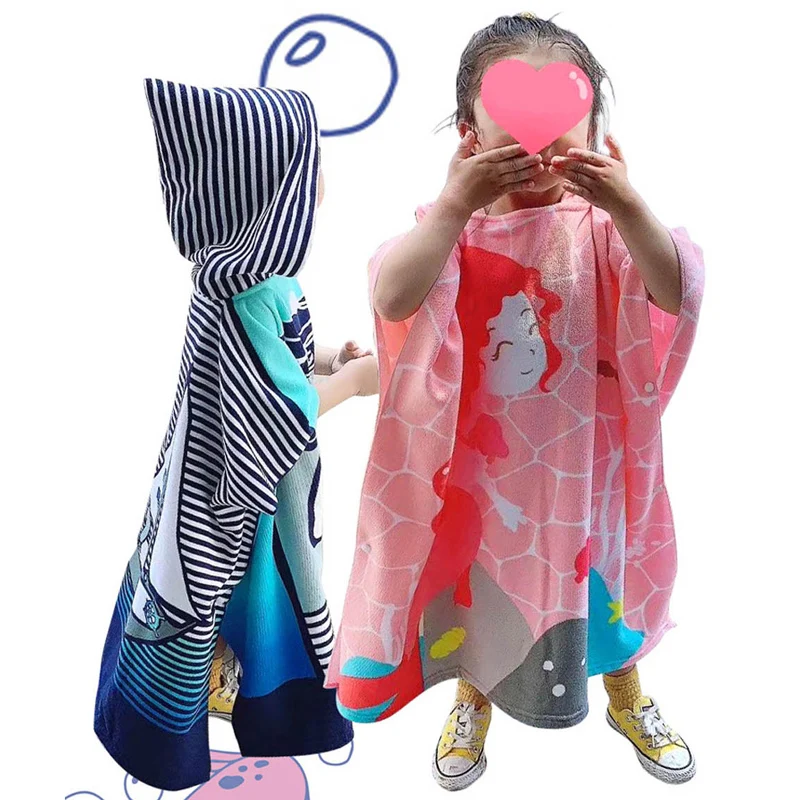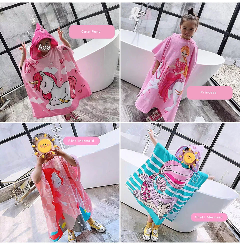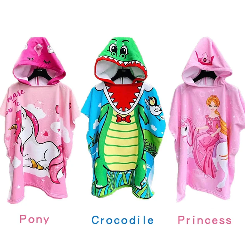 Детский банный халат для девочек, Пляжное Пончо, милый банный халат с капюшоном в виде пони, динозавра, русалки, для серфинга, купания, банное полотенце для детей