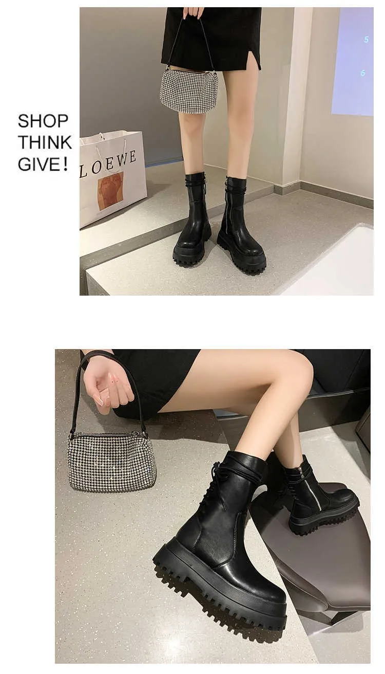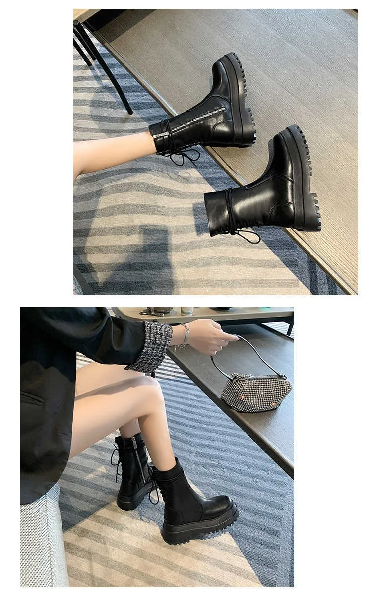 Женские ботильоны на толстой подошве, готические ботинки в стиле панк с круглым носком и боковой молнией, 2021