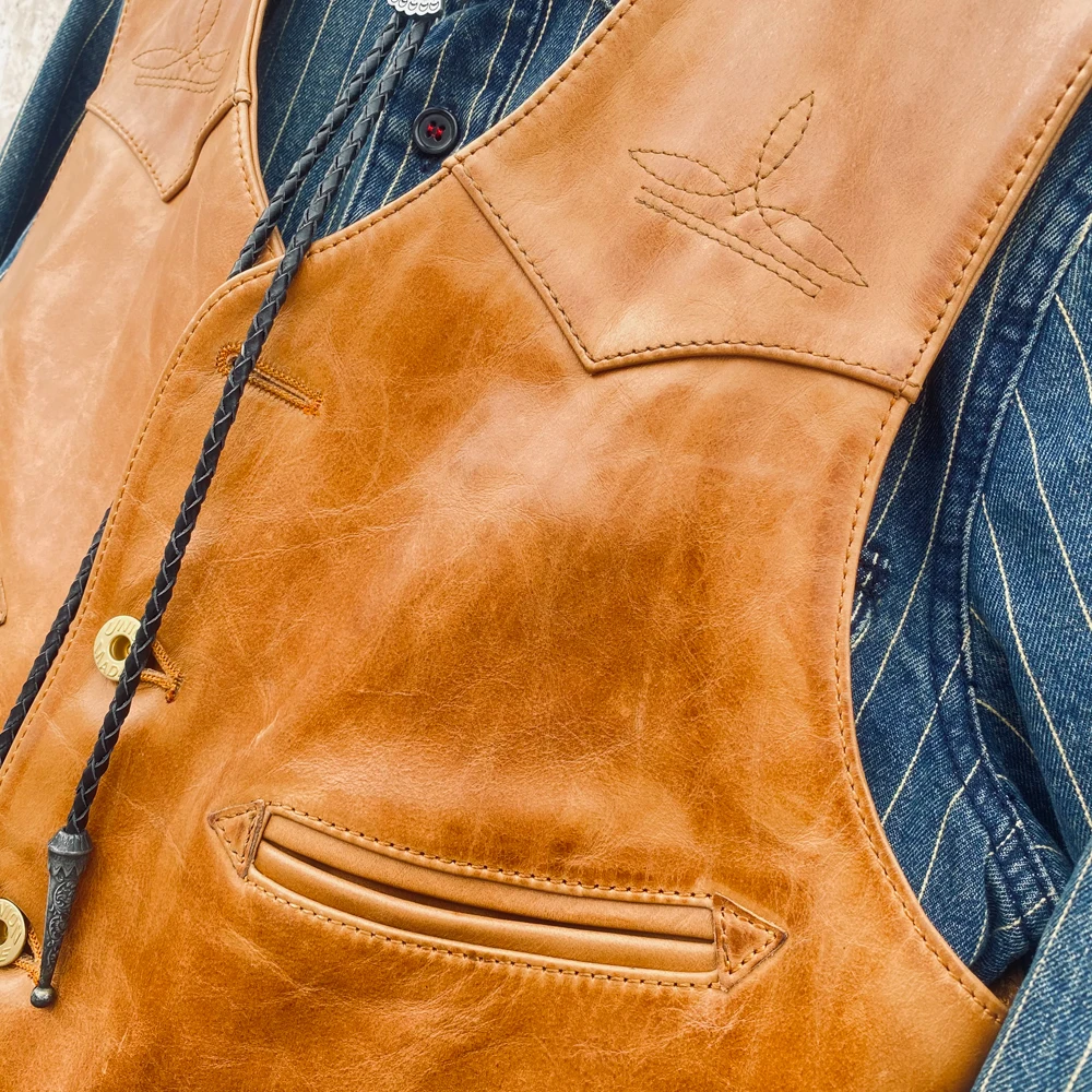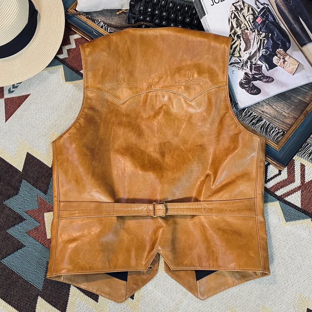 Жилет из воловьей кожи в американском стиле ретро без масляного воска