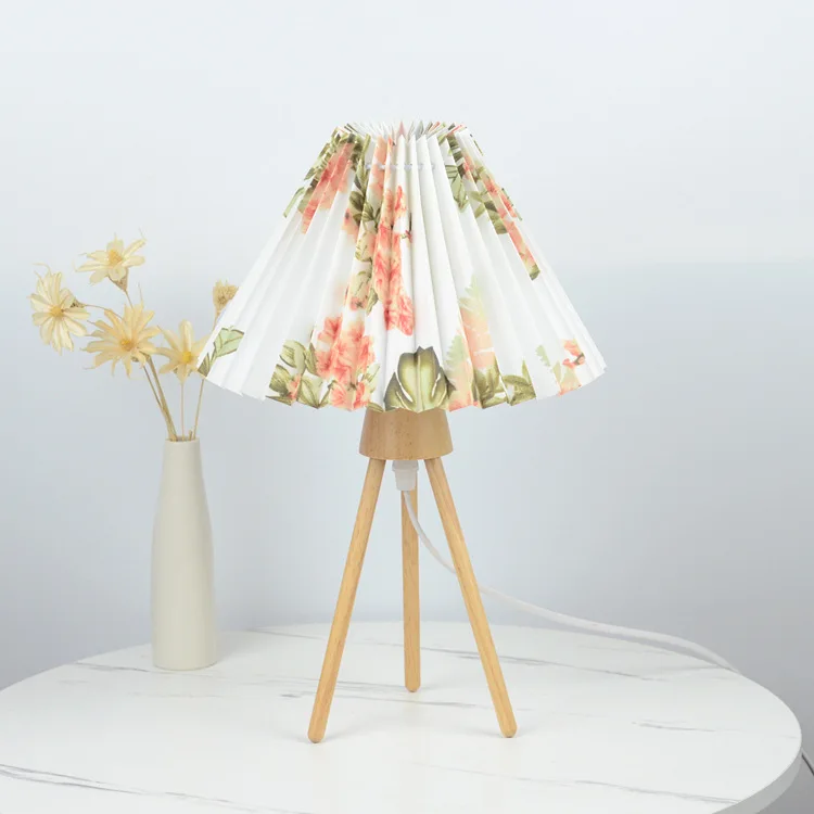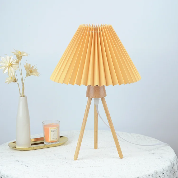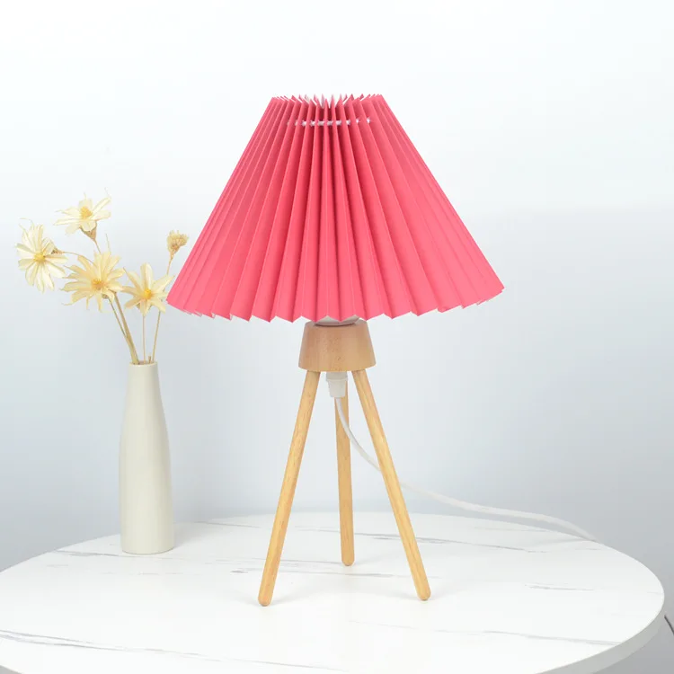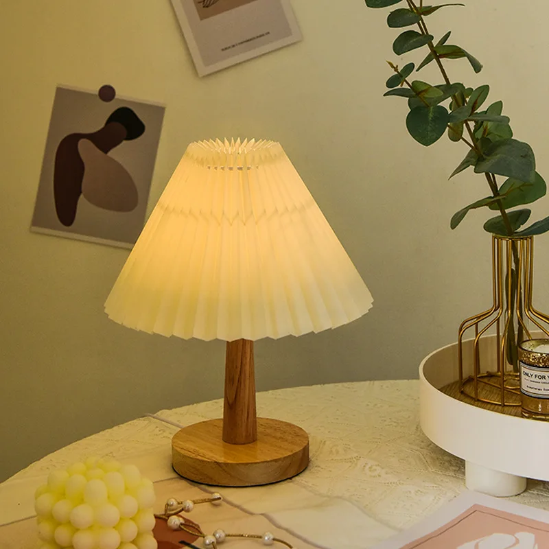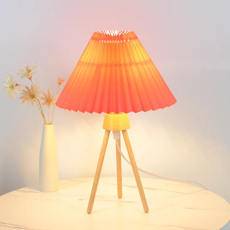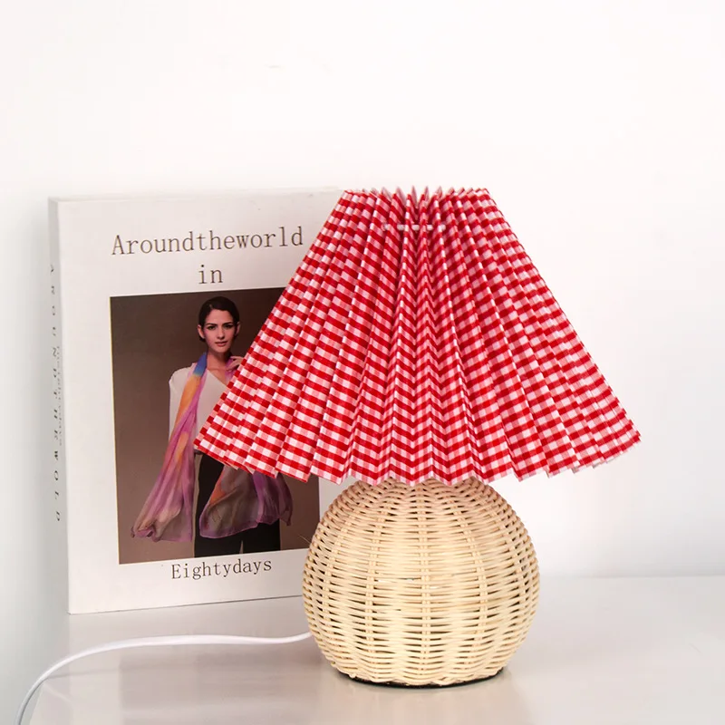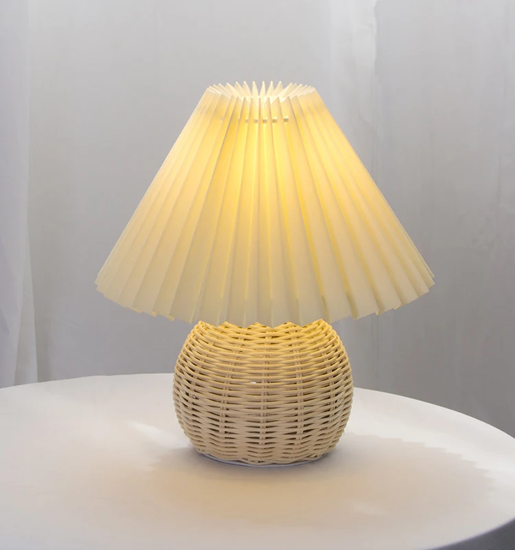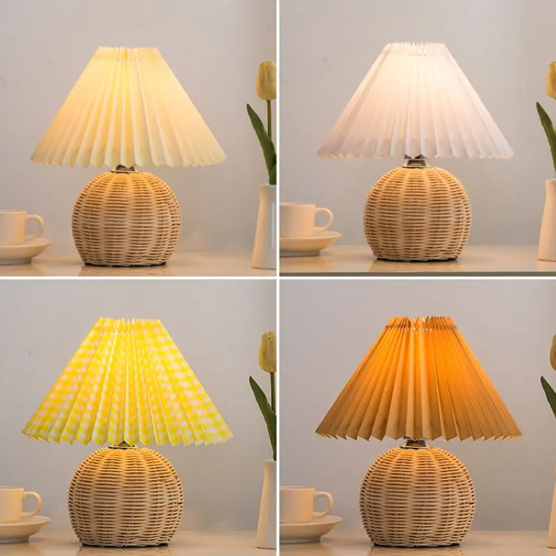 Винтажная лампа из ротанга, настольные корейские настольные лампы для спальни, лампа для гостиной, светильник для домашнего декора, креативная плиссированная лампа со светодиодной лампочкой E27