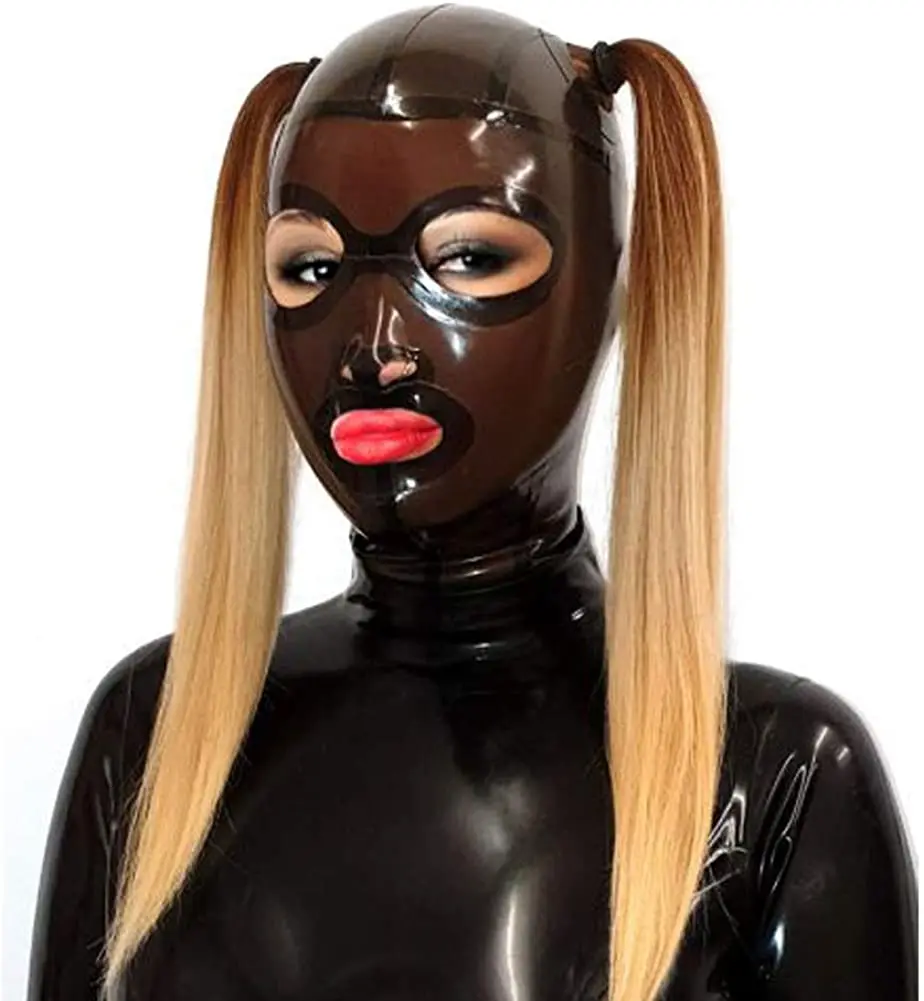 Латексный капюшон с молнией сзади резиновая маска для красивой деву...