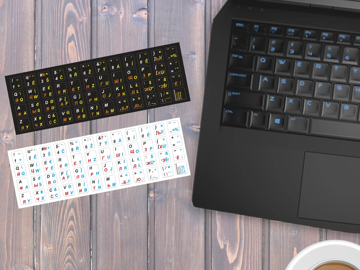 Набор виниловых наклеек с чешскими, русскими и английскими символами. Виниловые наклейки на клавиатуру для комфортной работы за компьютером.