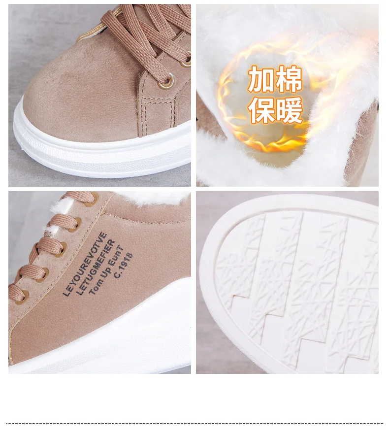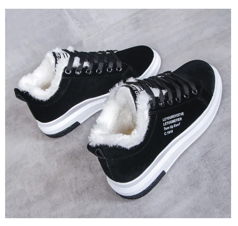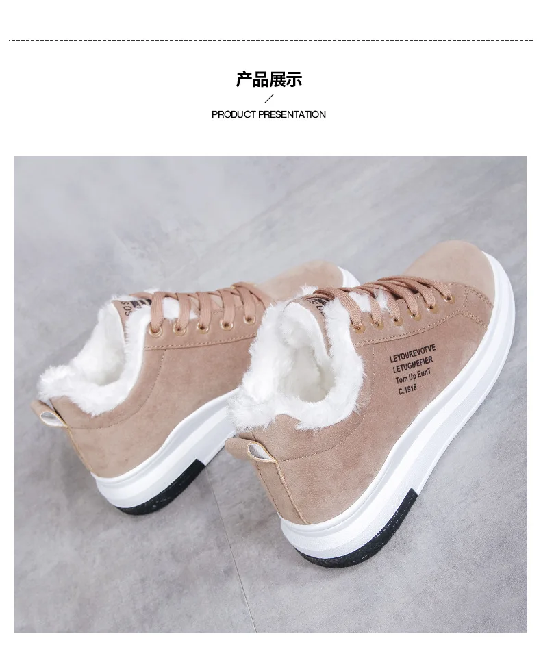 Женские кроссовки на шнуровке, хлопковые, на платформе, теплые, зимние