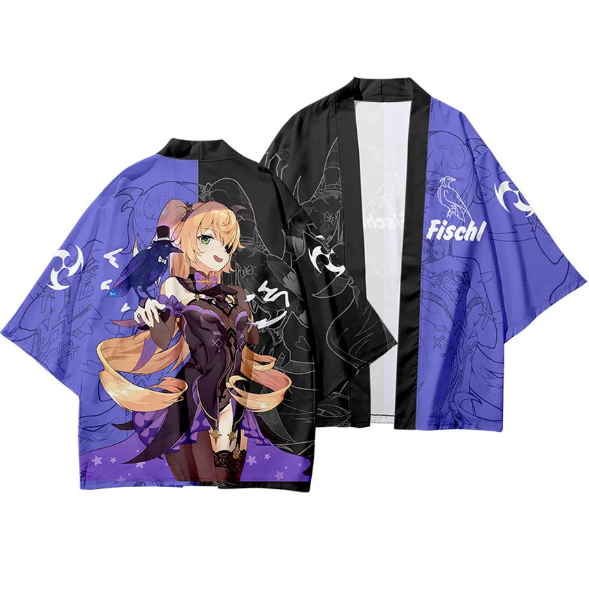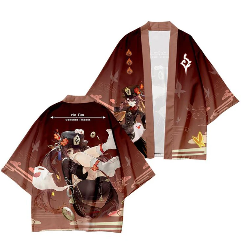 Японское кимоно Genshin Impact с 3D принтом, хаори юката, косплей, женскоеМужское модное летнее кимоно с коротким рукавом, рубашки, уличная одежда