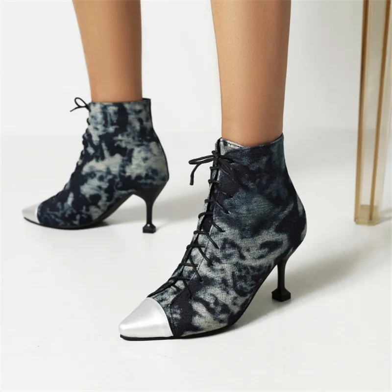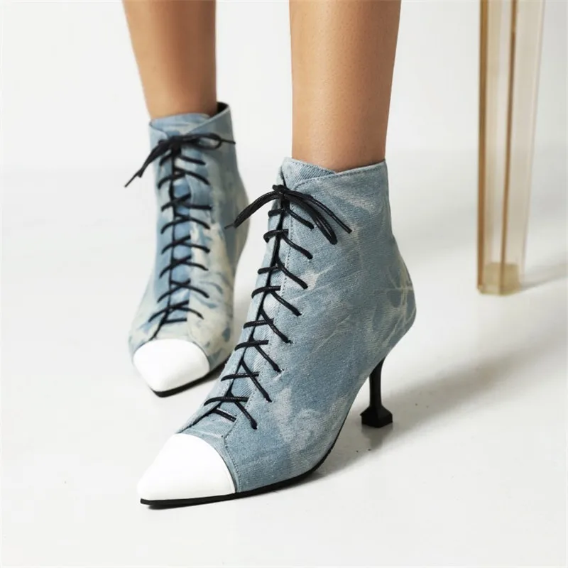 Женские джинсовые вечерние тинки PXELENA, на высоком каблуке, со шнуровкой, синего цвета