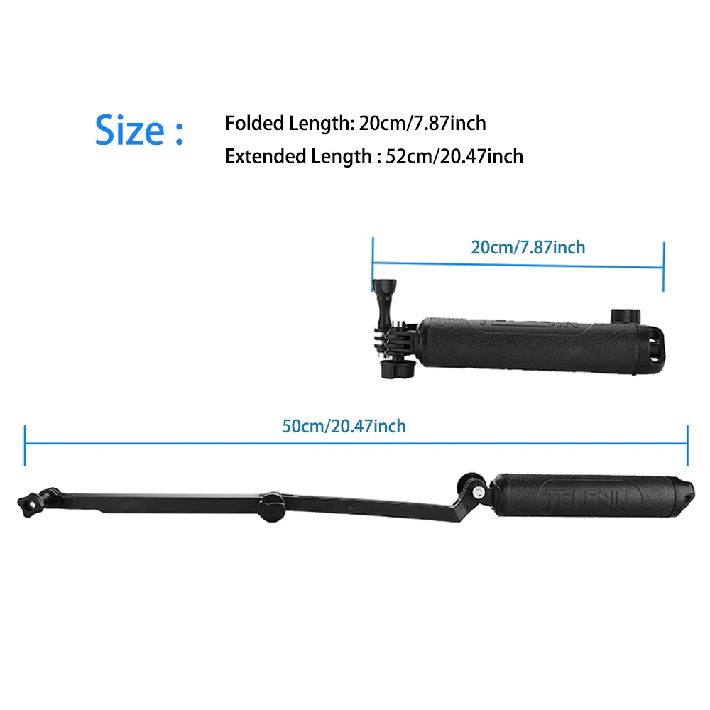 -Безопасность:Усовершенствованная ручка TELESIN (нескользящая плавающая ручка) Предотвращает падение селфи-палки и камеры/мобильного телефона и обеспечивает большую стабильность, чтобы убедиться, что вы фотографируете без беспокойства.