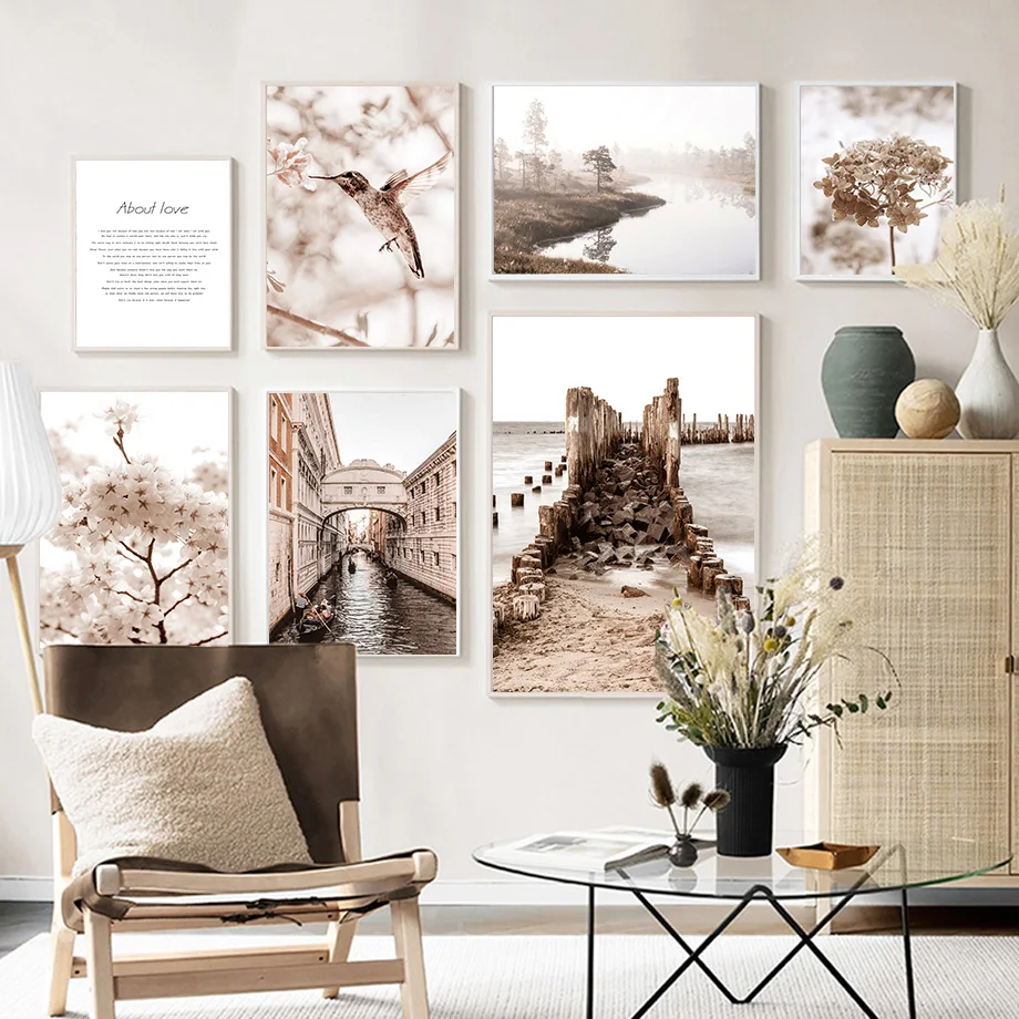 Осенняя Река Озеро птица цветок лодка любовь настенная Картина на холсте скандинавские постеры и принты настенные картины для декора гостиной