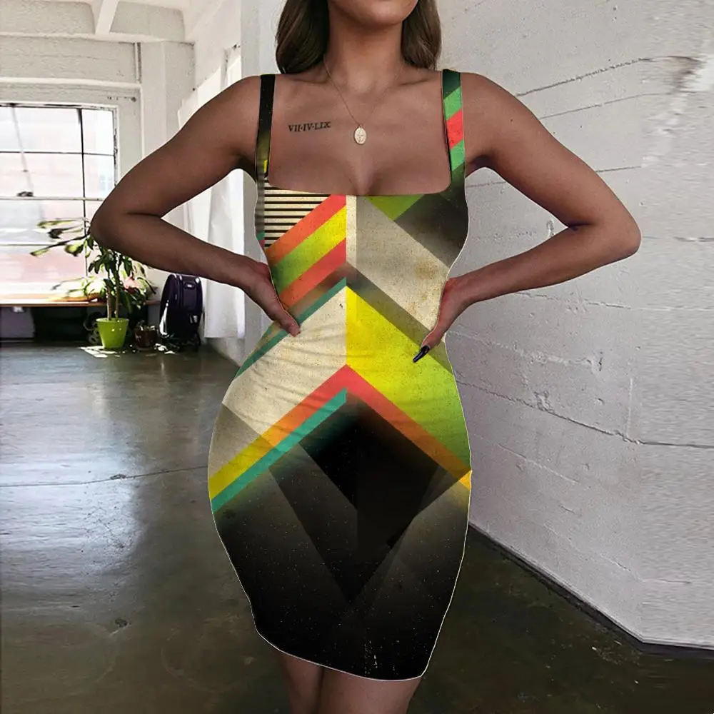 Платье женское неоновое с абстрактным 3D-принтом, на бретелях
