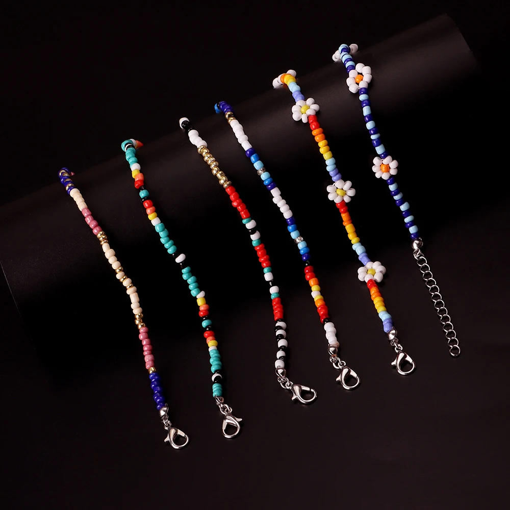Богемная модная Маргаритка, рисовые бусинки, браслеты для женщин, 6 цветов, ручная работа, темпераментная ножная цепочка, ювелирное изделие, Летний Пляжный подарок