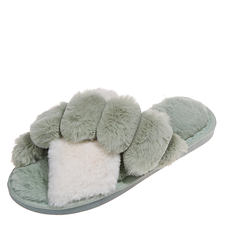 Зимние женские тапочки из искусственного меха, теплая пушистая домашняя обувь с пушистыми перекрестными ремешками, Уютная домашняя нескользящая обувь разных цветов, оптовая продажа