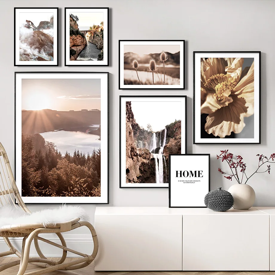 Настенные картины на холсте с изображением заката, гор, водопада, морского клевера, скандинавские постеры и принты для украшения гостиной