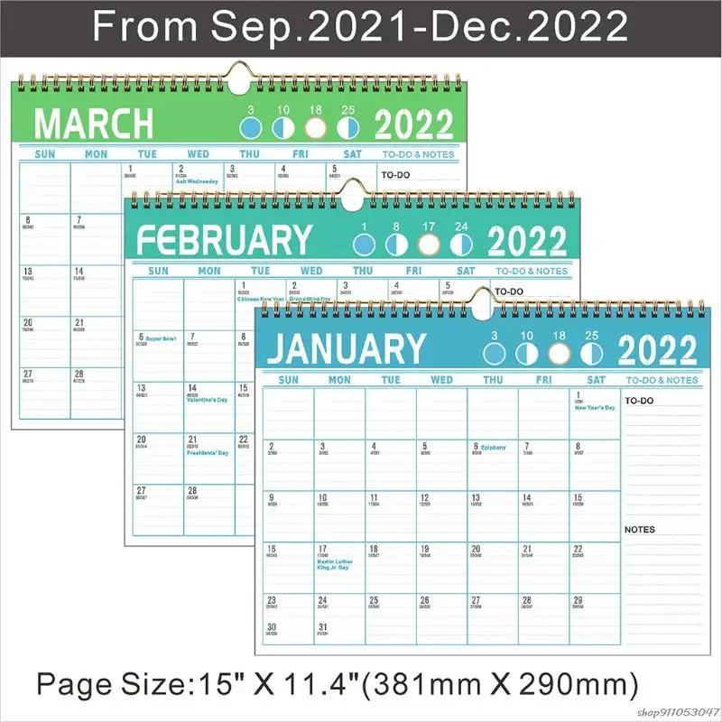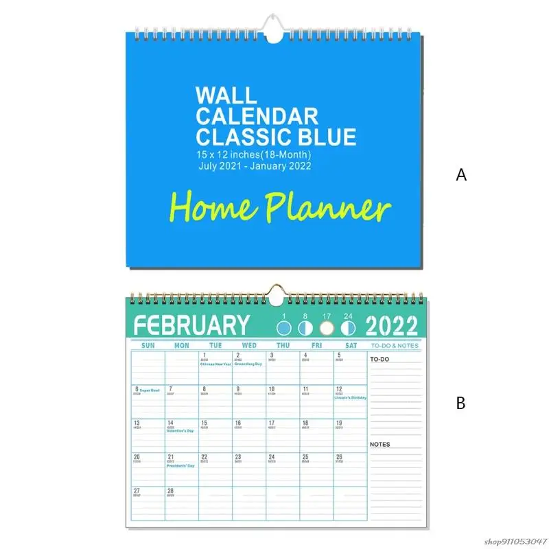 Ежемесячный настенный календарь Июль 2021-декабрь. 2022 15x12 дюймов двухпроводная переплетная петля, высококачественные толстые блоки 21 из линейной бумаги, оптовая продажа