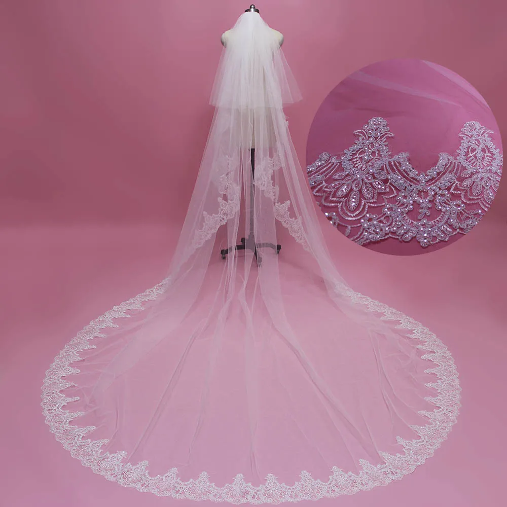 Блестящая кружевная Длинная свадебная вуаль с блестками, 3 метра, б...