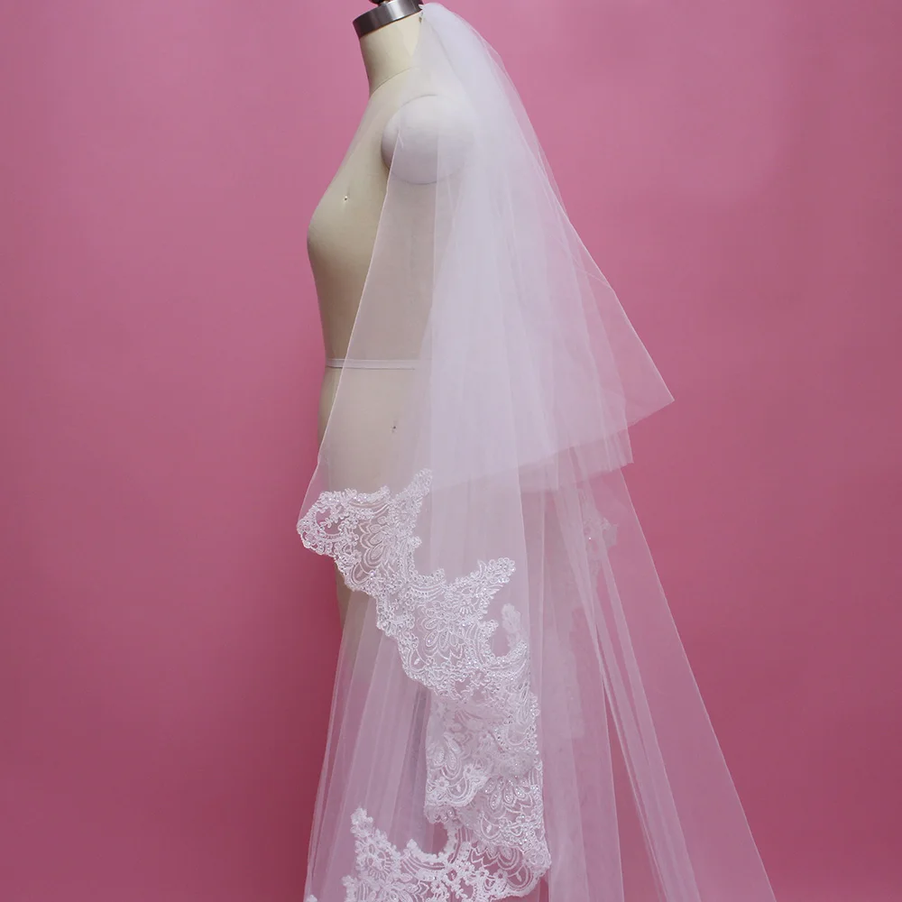 Однослойная кружевная свадебная фата без гребня, 3 метра, крышка дл...