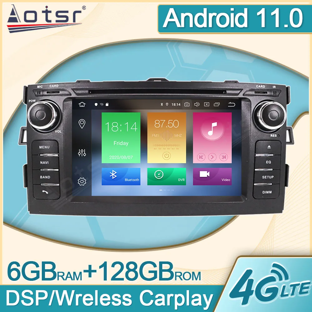 Автомобильный радиоприемник 6 + 128G Android 11 для Toyota Auris 2006 2007 2008 - 2012 мультимедийный плеер Видео DVD GPS навигация Carplay головное устройство