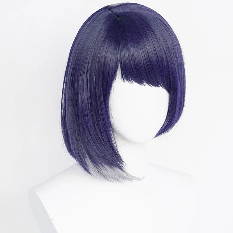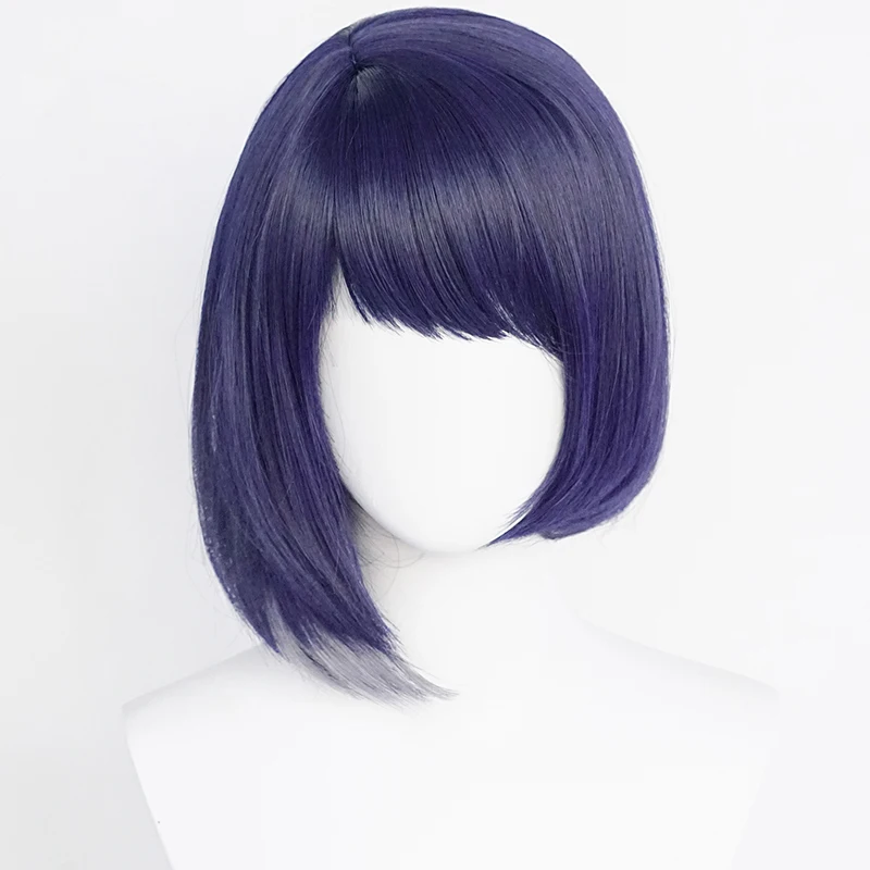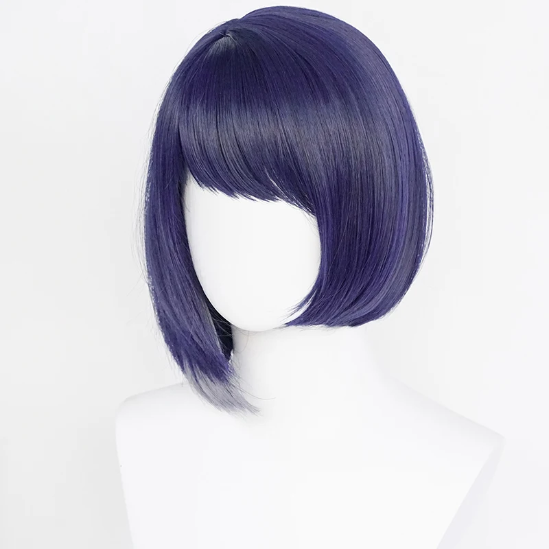 Парик для косплея Game Genshin Impact Kujou Sara, 35 см, синие короткие прямые термостойкие синтетические волосы, парики из аниме + шапочка для парика