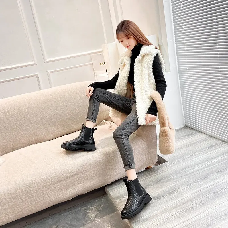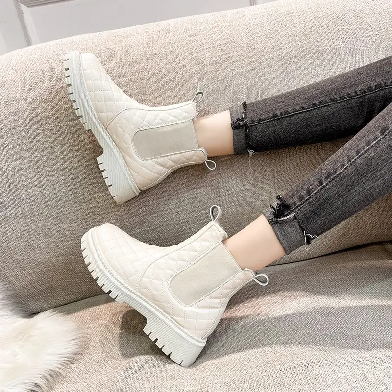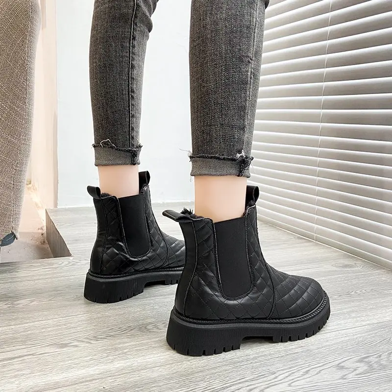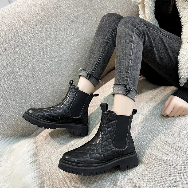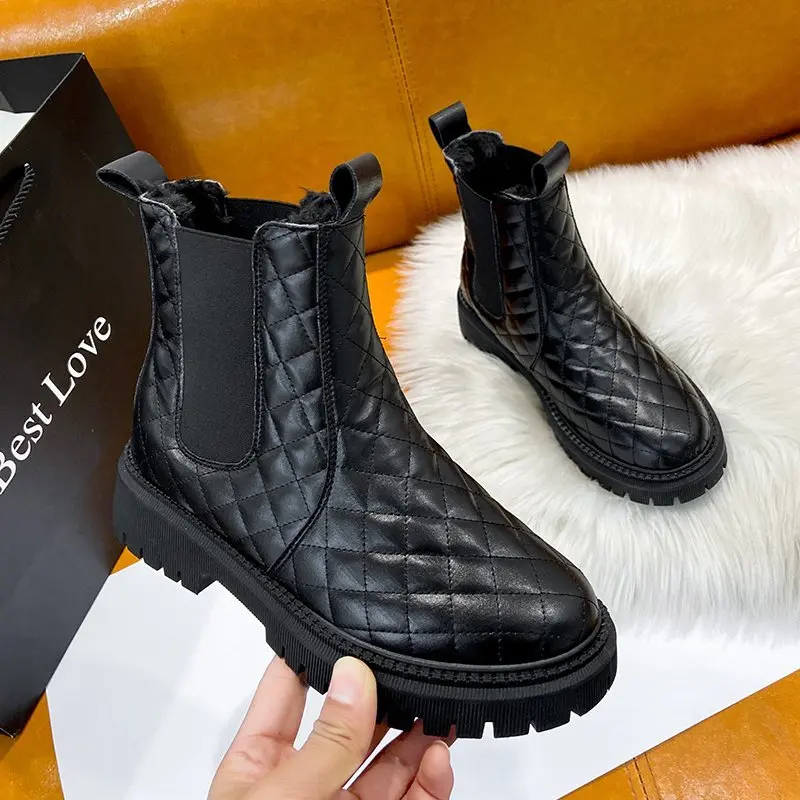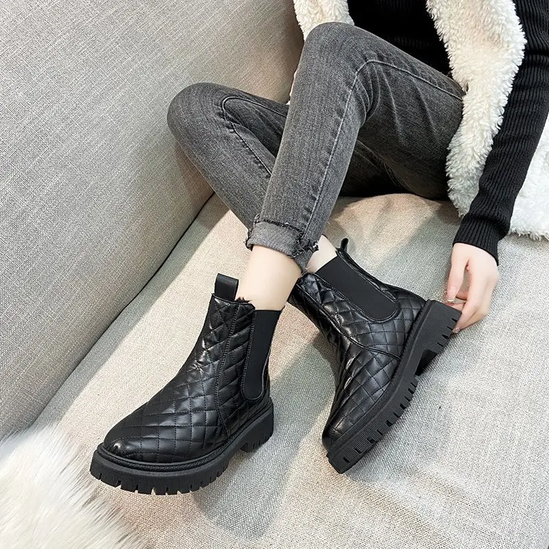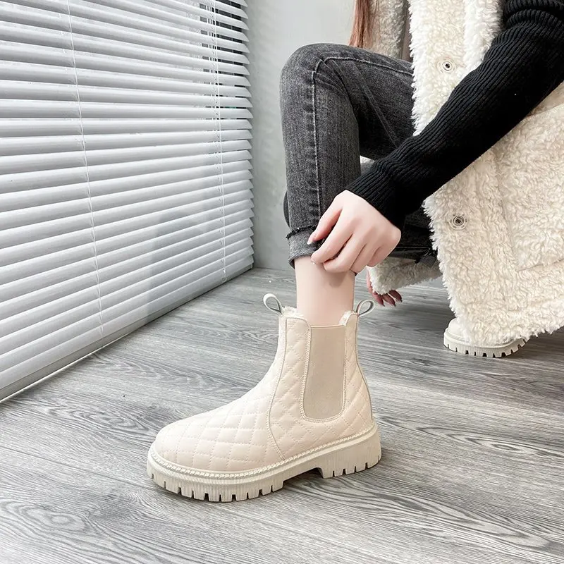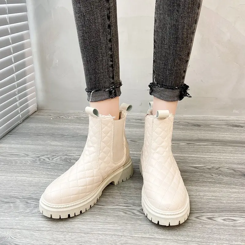 Женские ботинки на меху, теплые плюшевые ботильоны без застежек, повседневная обувь на плоской подошве, обувь в стиле венге, зима 2021