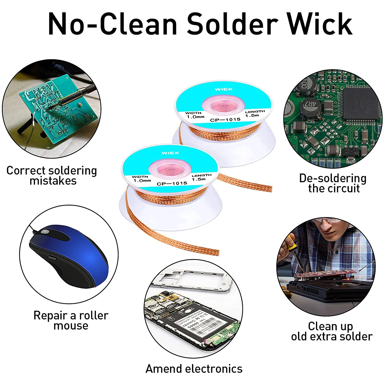 1,5 мм 2 мм 2,5 мм 3 мм 3,5 мм ширина 1,5 м длина оплетка для распайки сварочный припой для снятия фитиль провод свинцовый шнур флюс BGA ремонтный инструмент