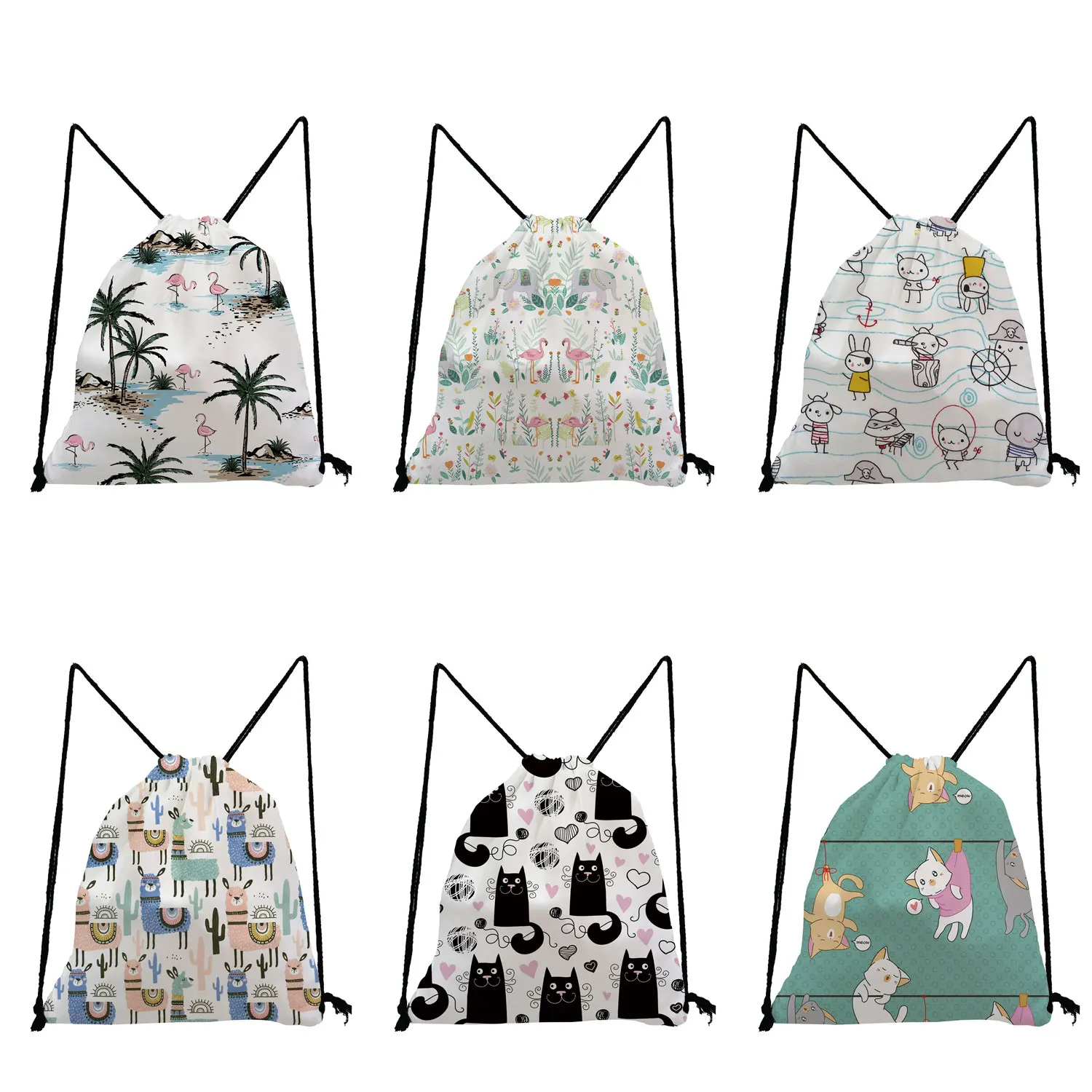 Сумка на шнурке с животным принтом милый кролик Кот Детский рюкзак унисекс софтбэк сумка повседневная сумка для хранения портативные школьные сумки