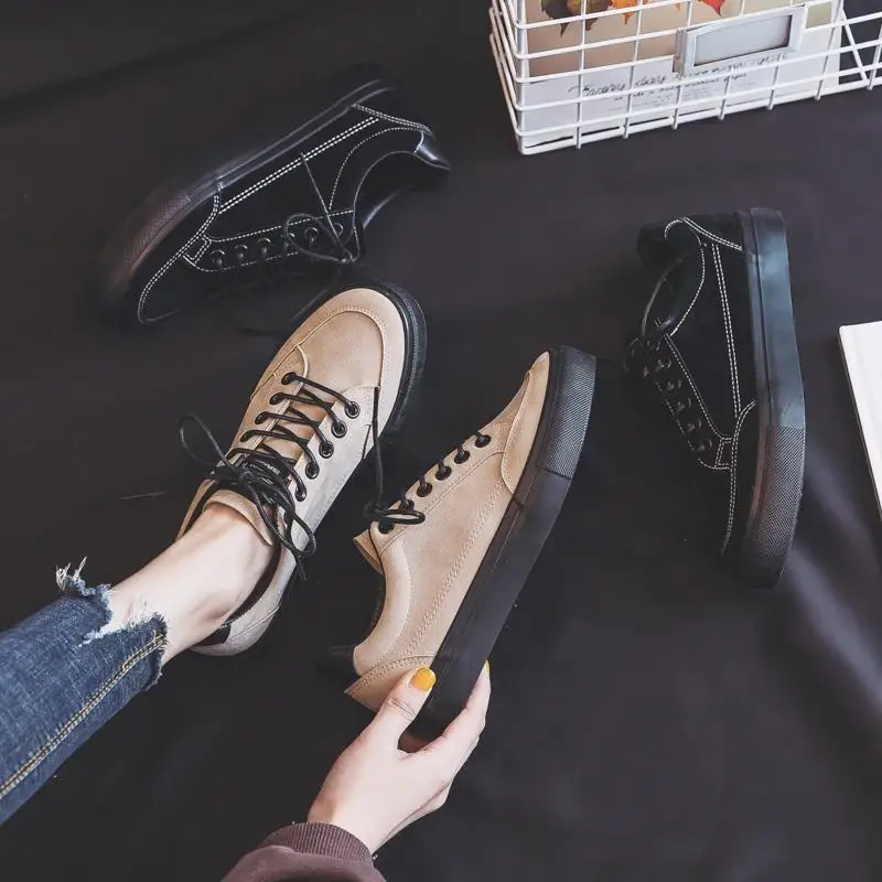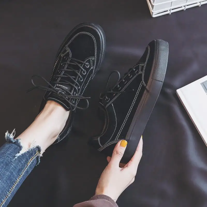Кеды женские на плоской подошве, повседневные Простые Классические холщовые кроссовки с низким вырезом, на шнуровке, для тенниса, черные, лето 2021