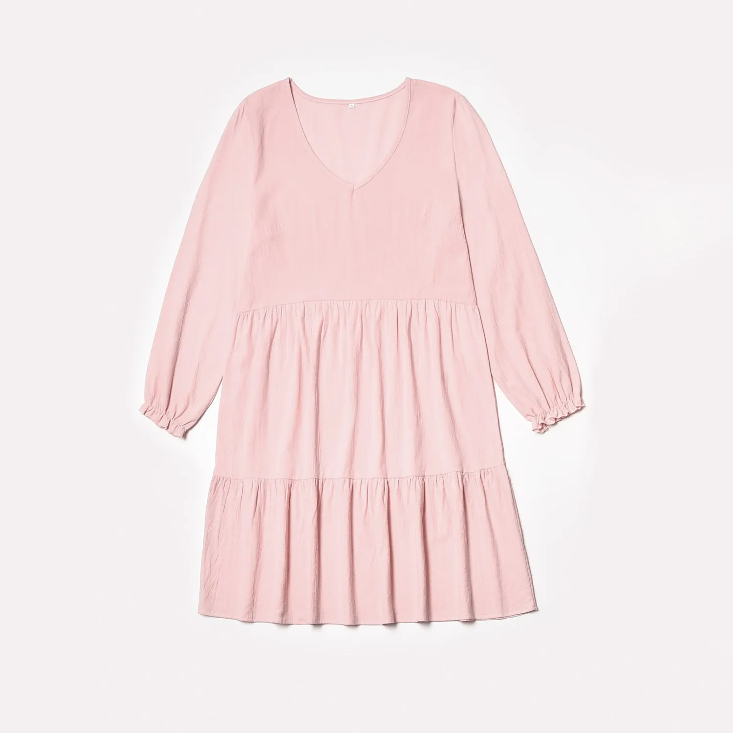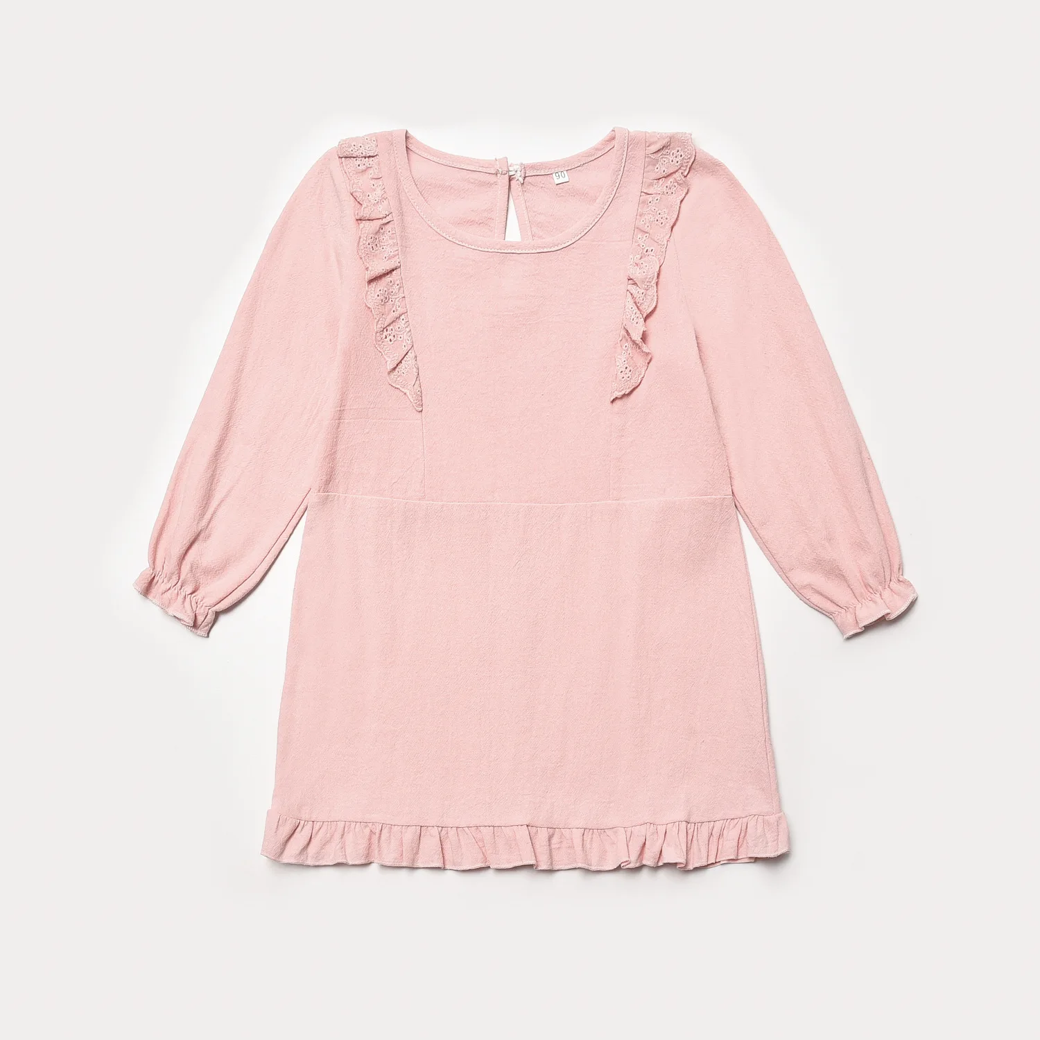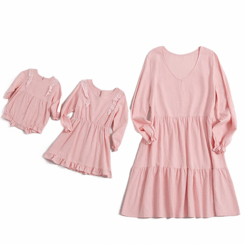 Розовая семейная Одинаковая одежда, платье для мамы и дочки, одежда с длинными рукавами и оборками для мамы, ребенка, мамы и я, одежда для девочек и женщин