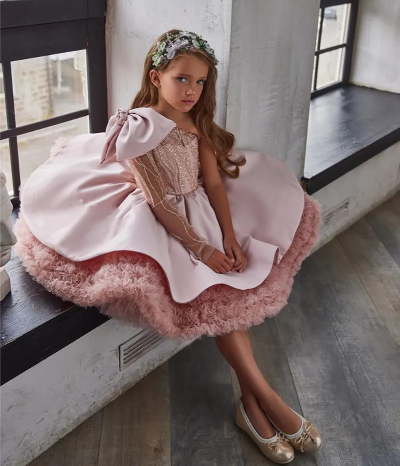 Розовые платья для девочек с блестками и цветами, Платья До Колена ...