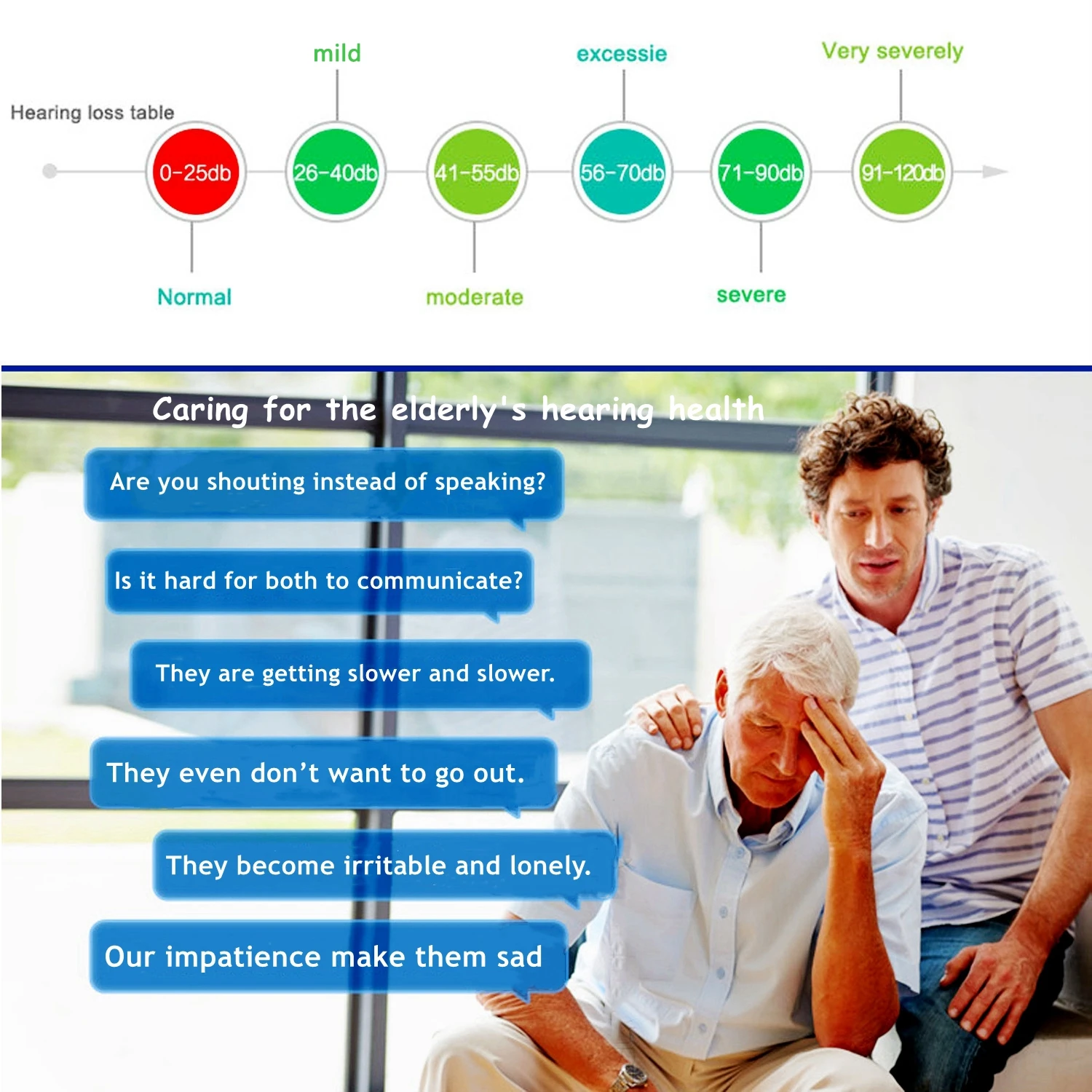Забота о здоровье слуха пожилых людей Вы кричите вместо того, чтобы говорить? Трудно ли им общаться? Они становятся все медленнее и медленнее. Они даже не хотят выходить на улицу. Они становятся раздражительными и одинокими. Наше терпение делает их грустными.