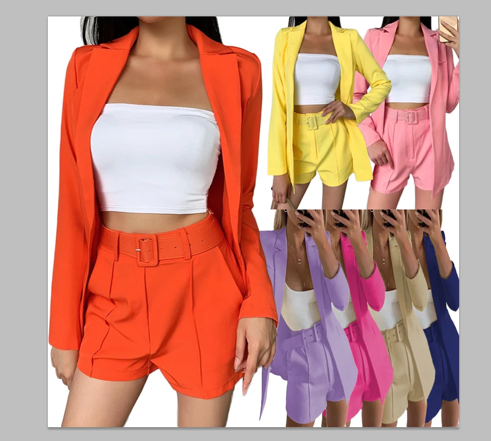 Женский офисный комплект из 2 предметов, блейзер и шорты, элегантны...