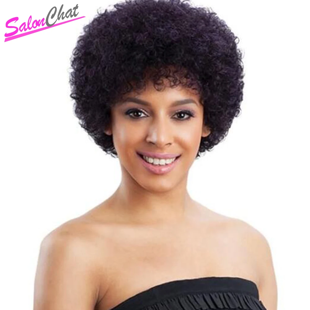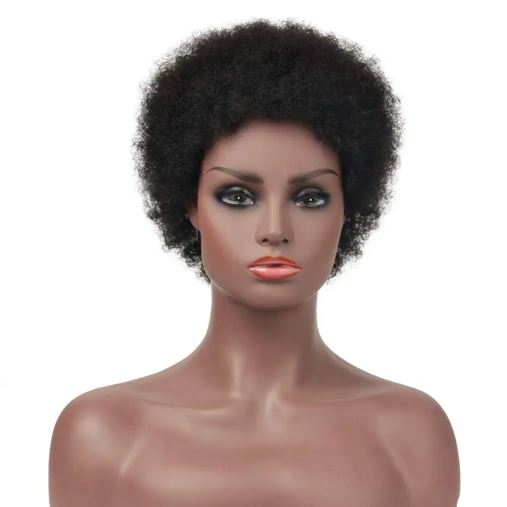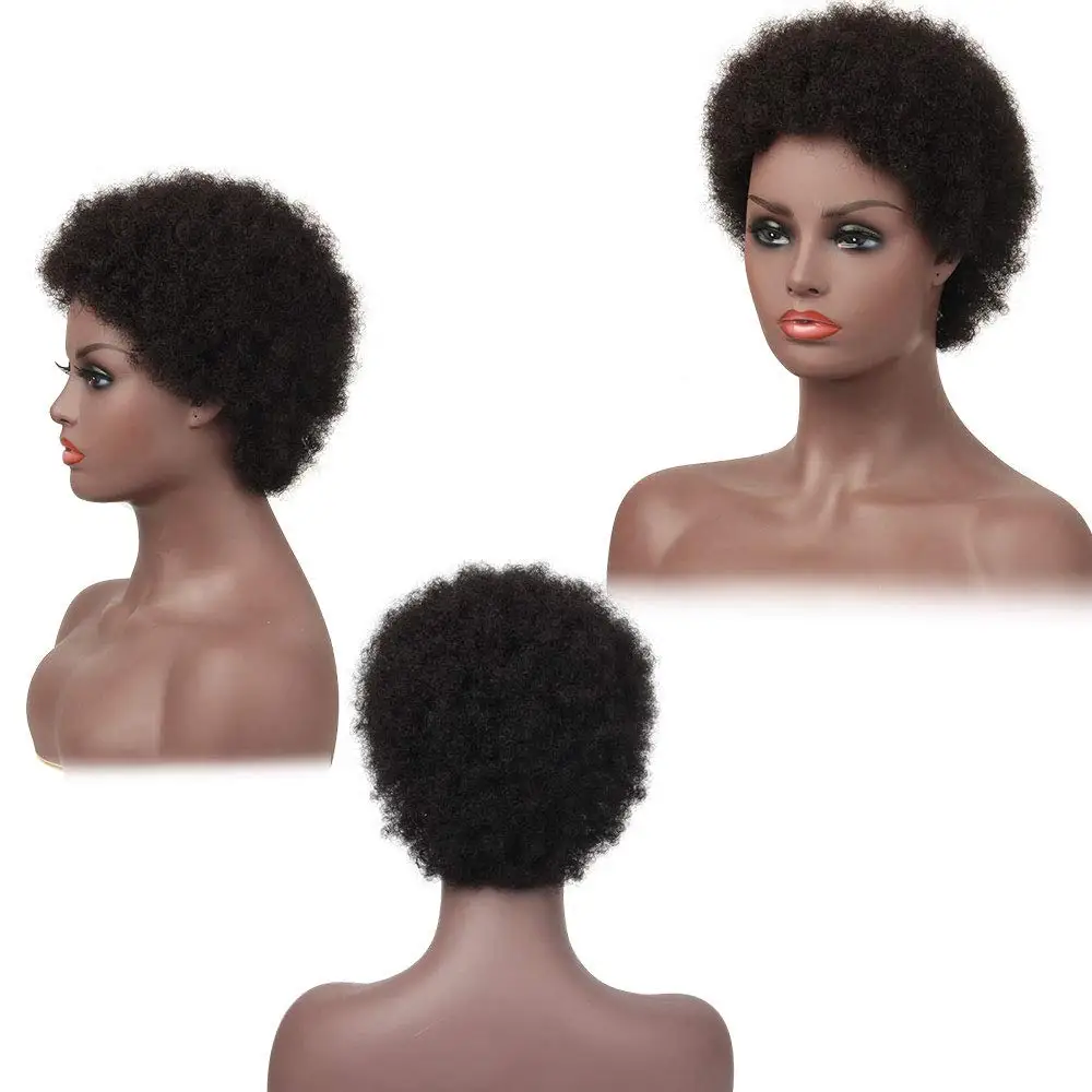 Короткие афро натуральные волнистые волосы 100% Реми бразильский парик машинная работа натуральные черные парики человеческие волосы для женщин
