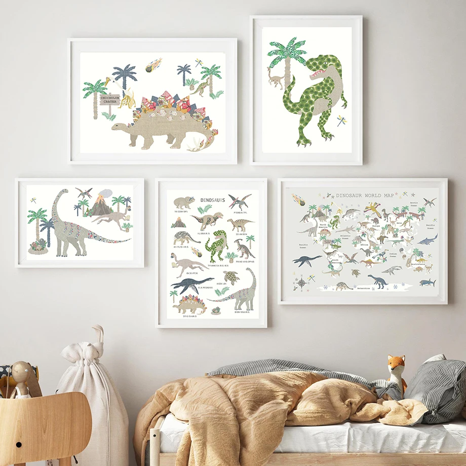 Настенная картина в стиле бохо, радуга, динозавр, любовь, алфавит, ...