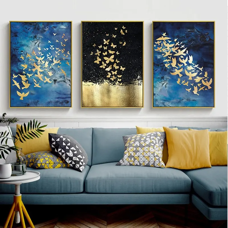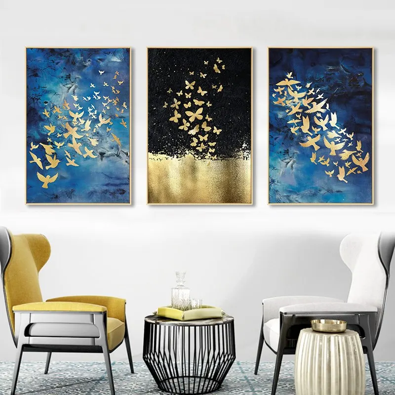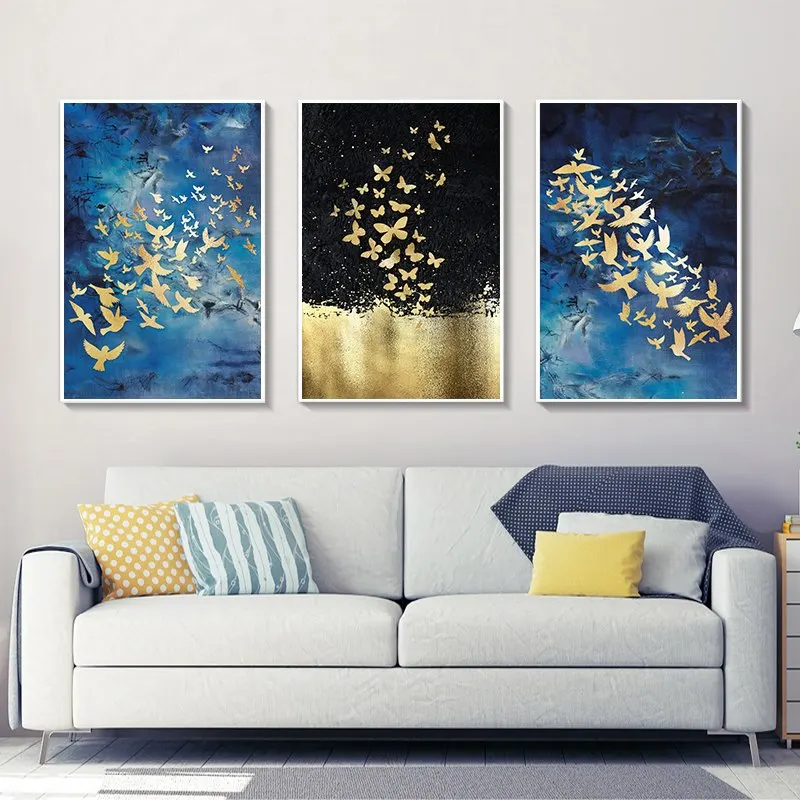 3 шт. абстрактная золотая птица бабочка настенная Картина на холсте фотопостер картина для гостиной домашний декор