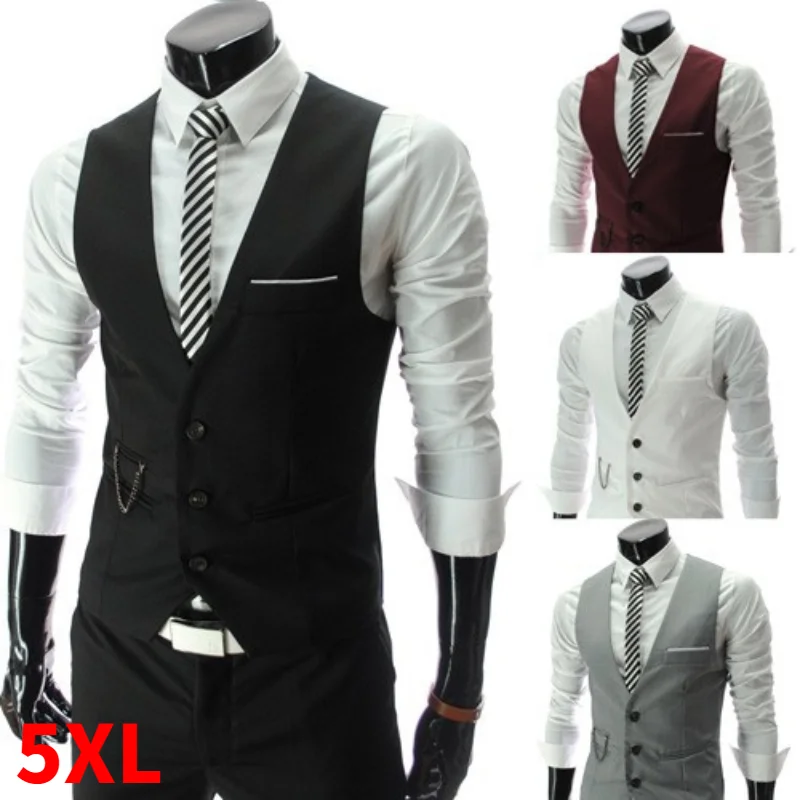 Мужской классический жилет, приталенный мужской костюм, жилет, весна-осень, однотонная Повседневная официальная деловая куртка без рукавов, 2021