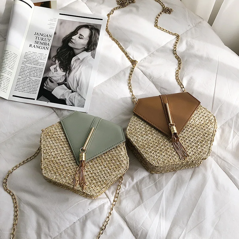 Богемные Ротанговые женские сумки через плечо, шикарная шестиугольн...