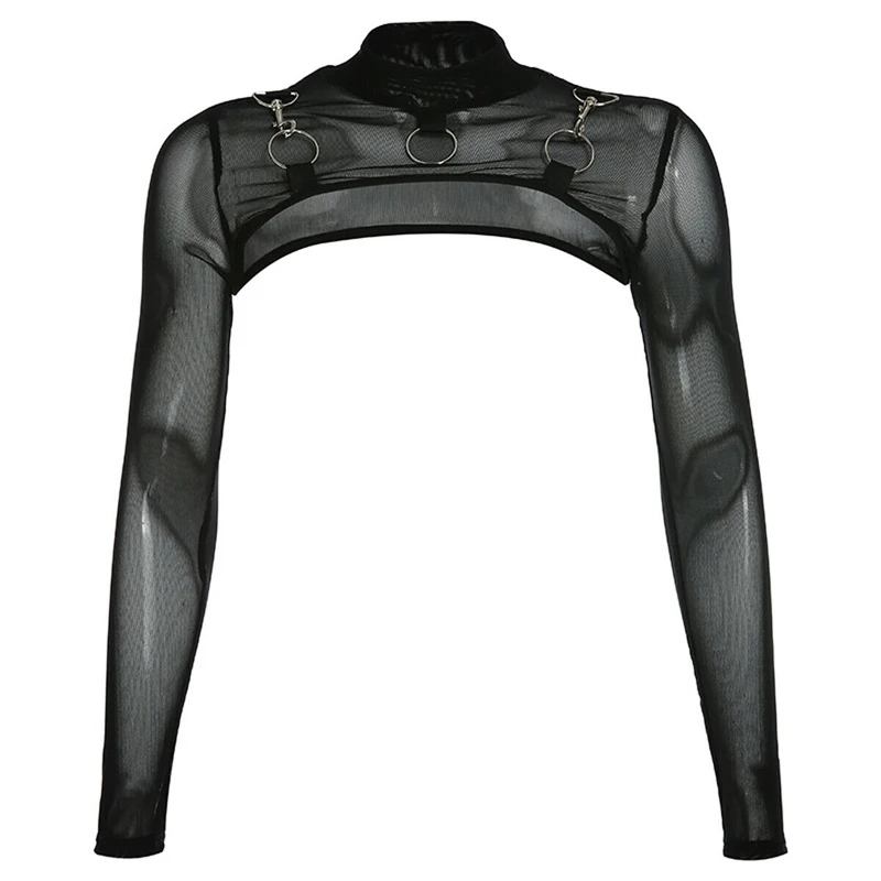 Женские укороченные топы с длинным рукавом, прозрачная сетчатая руб...