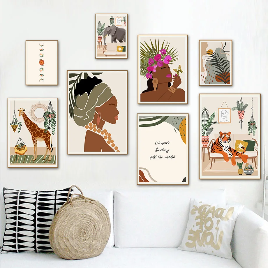 Плакаты и принты на холсте с изображением Африканской женщины, Луны...