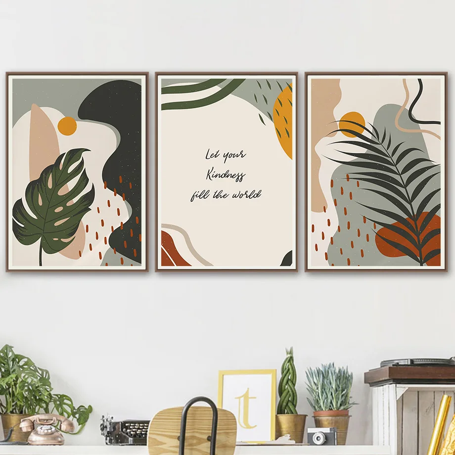 Абстрактная Геометрия зеленый лист Восход Бохо настенная живопись х...