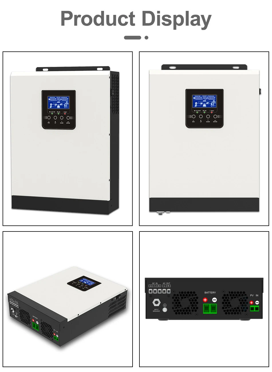 Это многофункциональный инвертор/зарядное устройство, сочетающее функции инвертора, солнечного зарядного устройства и зарядного устройства для обеспечения бесперебойного питания с портативным размером. Его комплексный ЖК-дисплей предлагает настраиваемую и легкодоступную кнопочную работу, такую как ток зарядки аккумулятора, приоритет переменного/солнечного зарядного устройства и Допустимое входное напряжение на основе различных приложений.