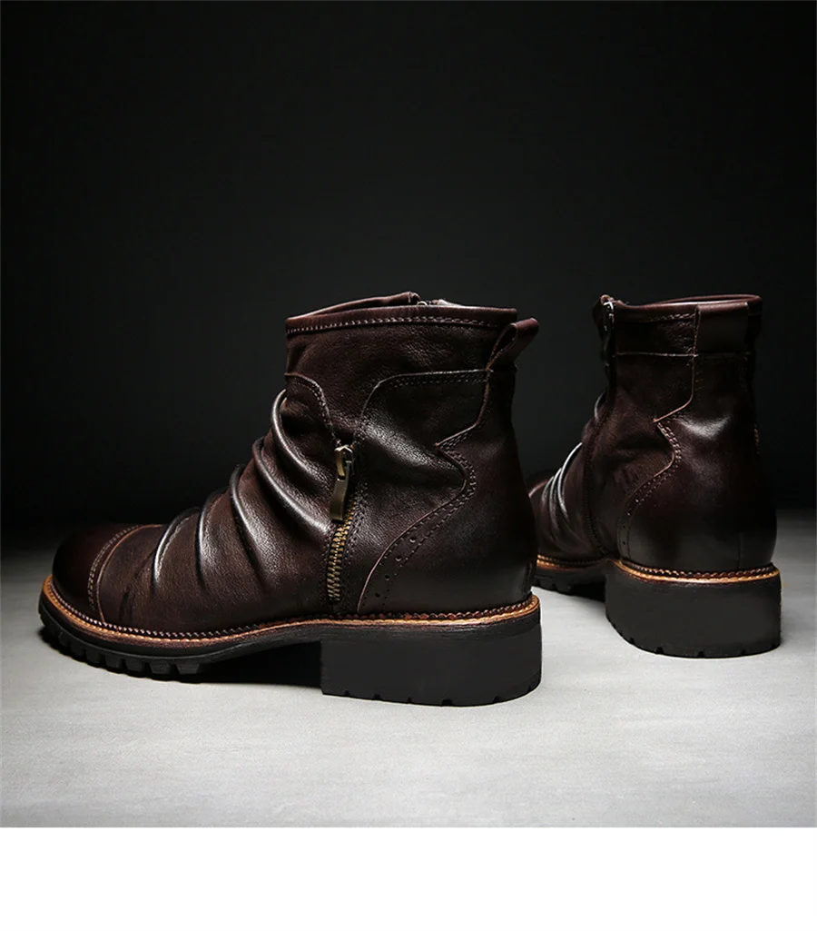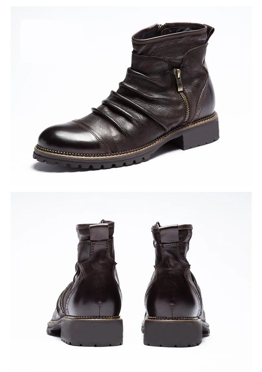 Ботильоны мужские кожаные на молнии, Повседневные Дышащие, мотоцикл...