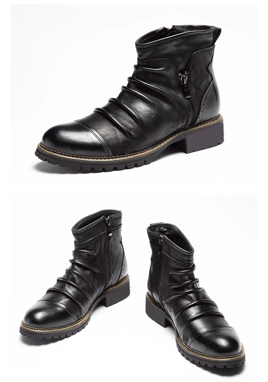 Мужские кожаные ботинки в стиле ретро, Черные ботильоны на молнии, ...