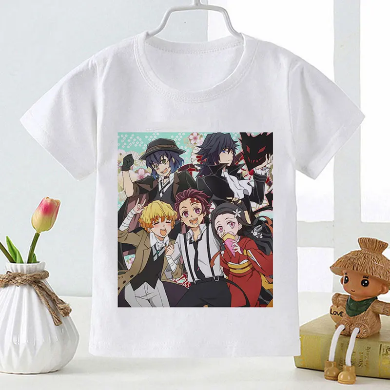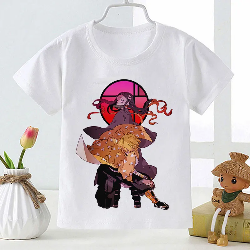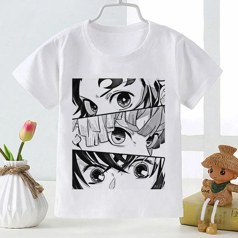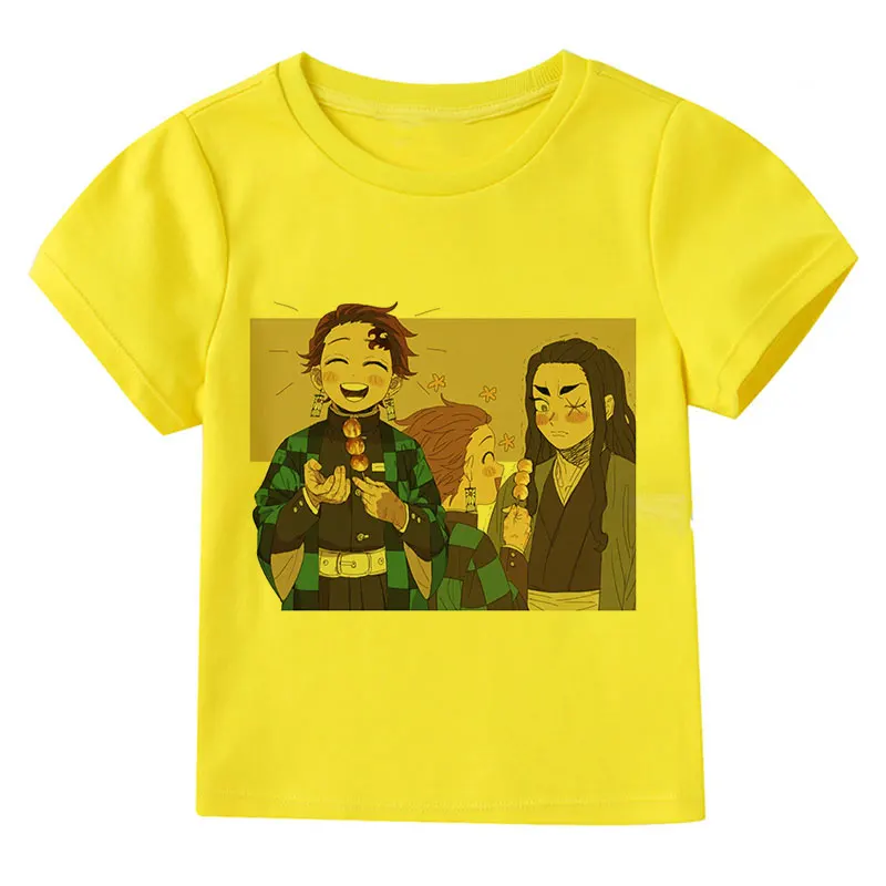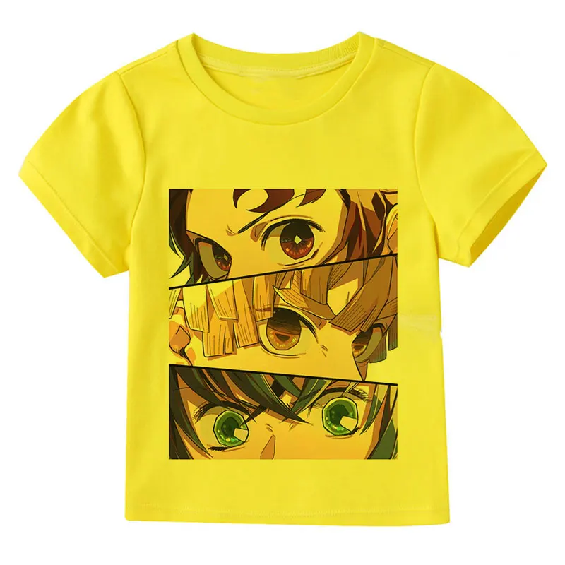 Футболка детская с рисунком аниме, Модная тонкая Свободная рубашка с круглым вырезом и надписью рассекающий демонов, желтая белая