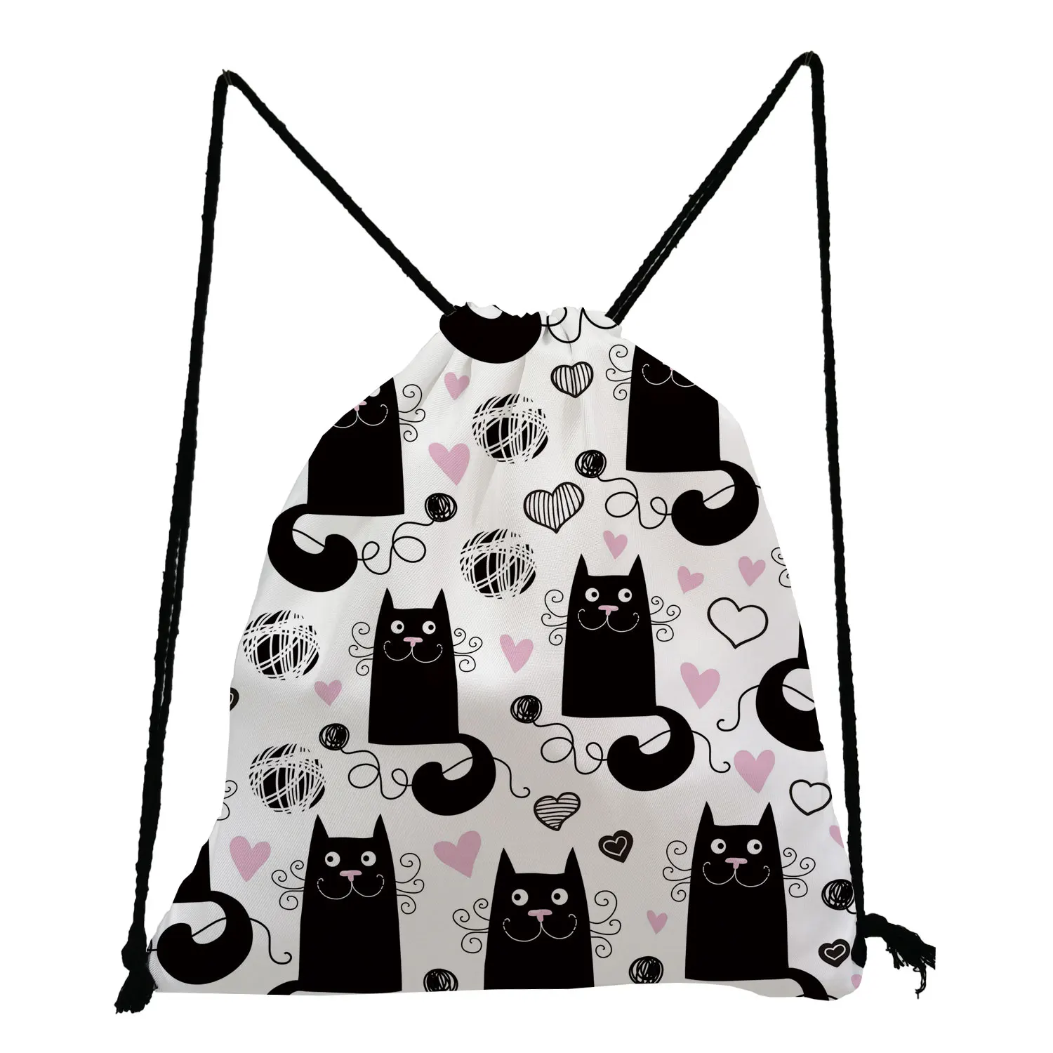 Рюкзак с мультяшным котом и принтом милых животных, сумка на шнурке, повседневная мягкая сумка, унисекс, сумка для обуви для школы, переносная дорожная сумка для хранения
