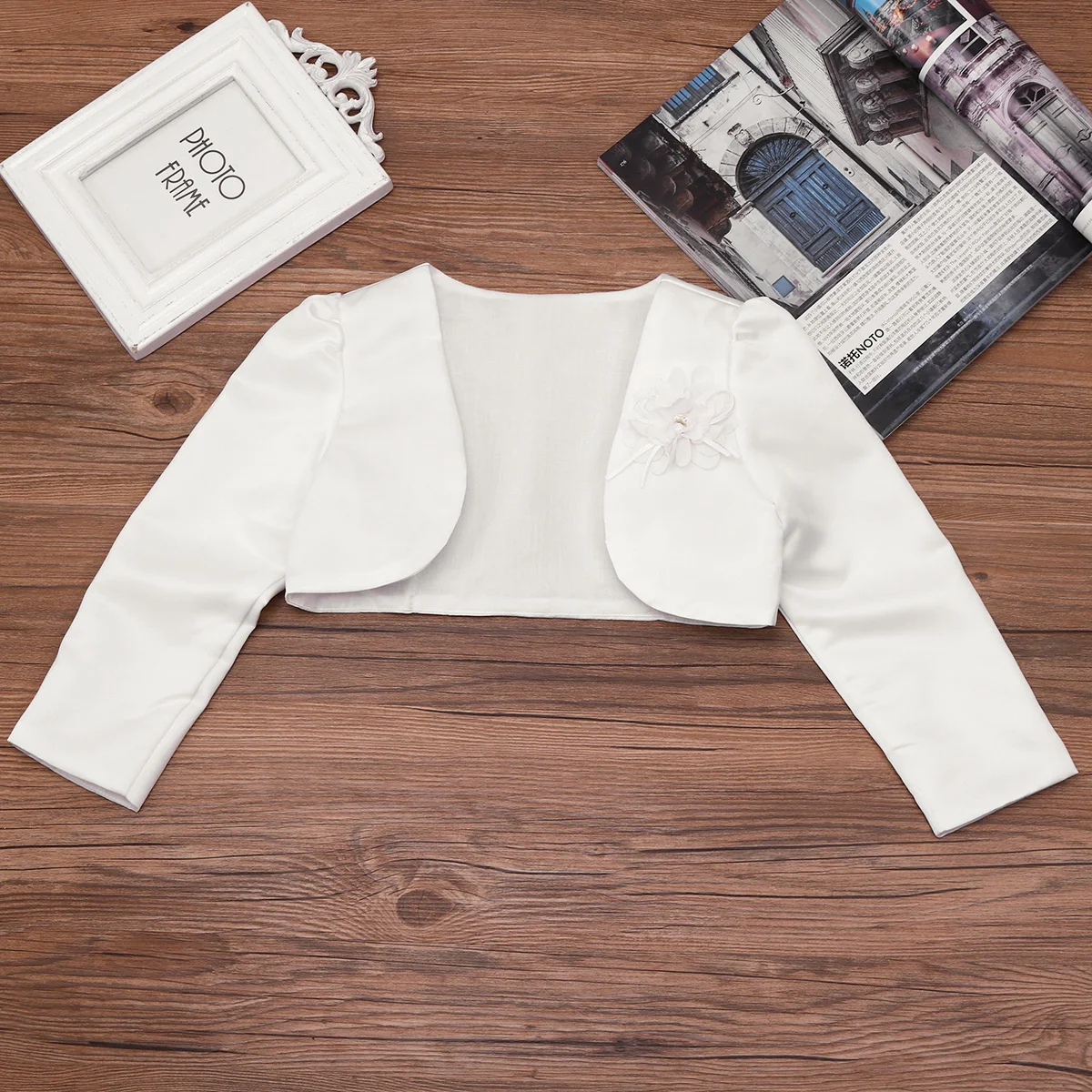 Очаровательное болеро для девочек; Кардиган; Свитер.Длинные рукава, с подкладкой, открытый кардиган.Спереди с 3D цветком для украшения.Подходит для вечерние, свадьбы, дня рождения или в качестве повседневной одежды.